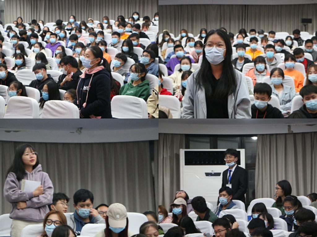 在新生提问环节,同学们就学习与工作、考研保研、辩论等方面提出自己的疑问,老生代表们耐心地对每个问题发表看法、提出建议。勉励同学们以乐观自信的心态面对生活中的难题,在大学四年里认真规划、勤奋踏实、积极进取。