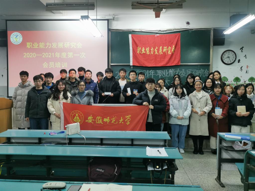 大会主要包括社团简介、有奖问答、会员权益、专业知识介绍等环节。大会伊始,会员部副部长程杰借用PPT对社团简介、各部门职能和会员权益等内容进行了介绍,加深新会员们对社团的了解。其后,活动部副部长凡晓雨则为大家介绍了社团的精品活动模拟政府和“2+2”闯关公务员,并讲述了活动策划书的书写规范要求等内容。同时,凡晓雨在内容讲述完毕后提出了技能小知识问答,既活跃了现场气氛,又加深了会员们对技能培训知识的印象。宣传部部长沈雅雯从自身职能出发,介绍了独到的宣传小技巧,包括海报制作、照片拍摄技巧等内容。之后,综合部理事汪尚尚从实践入手,简单扼要地说明了Word、Excel、PPT等工作软件的实际应用。培训结束后,会长朱嘉庆就本次活动指出了活动流程安排不清、会前准备不足等几点不足,对各部门部长及理事的专业技能提出了更高的要求。此外,会长还表达了对职业能力发展研究会未来的美好期望,希望在大家的共同努力下将社团精品活动推向校级乃至省级。最后,全体参会人员合影留念。
