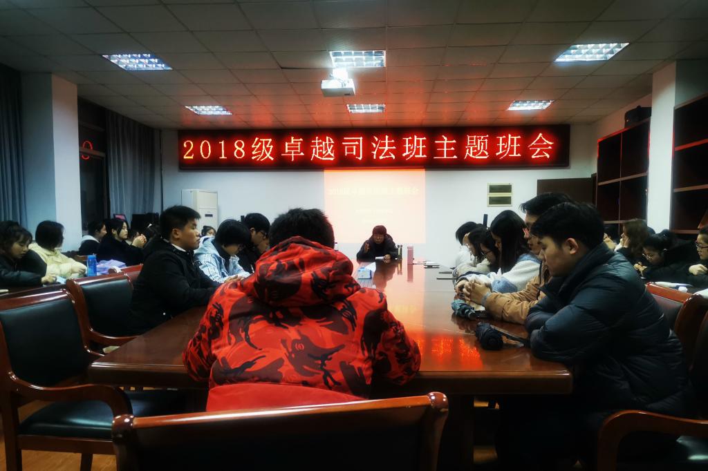 3月8日晚,18级卓越司法班在36365线路检测中心行政楼四楼会议室召开考研动员与校园安全主题班会。会议由班级辅导员王虹圆主持,班级全体同学参加。