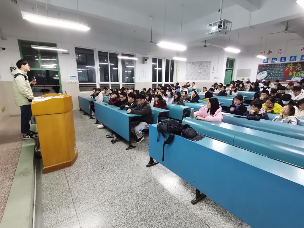 首先,张楠楠从建党一百周年背景下谈起,分别从为什么要学党史和怎么学党史两方面详细介绍了学习党史的必要性和重要性,要求同学们树立正确历史观,深刻领会蕴含其中的宝贵经验和重要启示。张楠楠举出“党史小故事”,以“本领恐慌”为切入口,强调同学们要克服当下的“本领恐慌”,努力学习,增强自身综合实力,全力备战考研和就业。