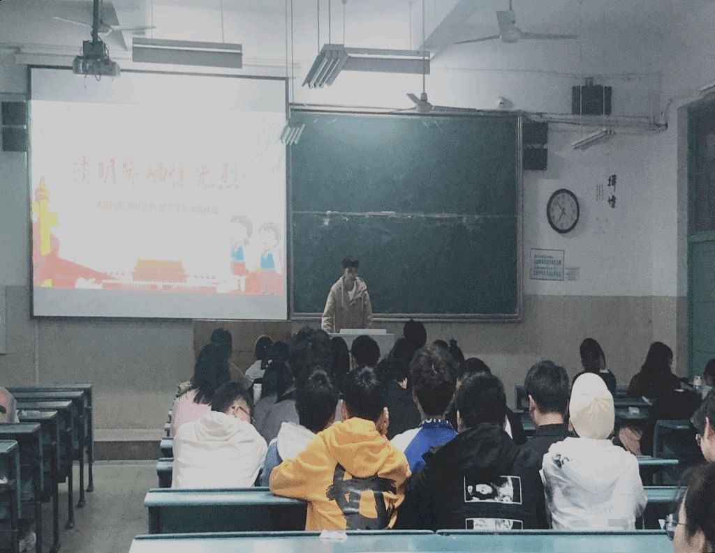 倪正然重点介绍了革命先烈们为了民族进步和国家独立所做的牺牲和努力,详细分享了雷锋和邱少云的英雄事迹,让大家更加深入、细致地感知到先烈们的无私奉献的大无畏精神,由衷感激、缅怀先烈。倪正然进一步围绕“不忘初心、牢记使命”主题教育的相关内容和要求展开阐述,以习近平总书记的讲话作为总结,向大家展示了中国无数仁人志士付出的努力,让同学们明白“中国的今天来之不易,我辈当自强”!