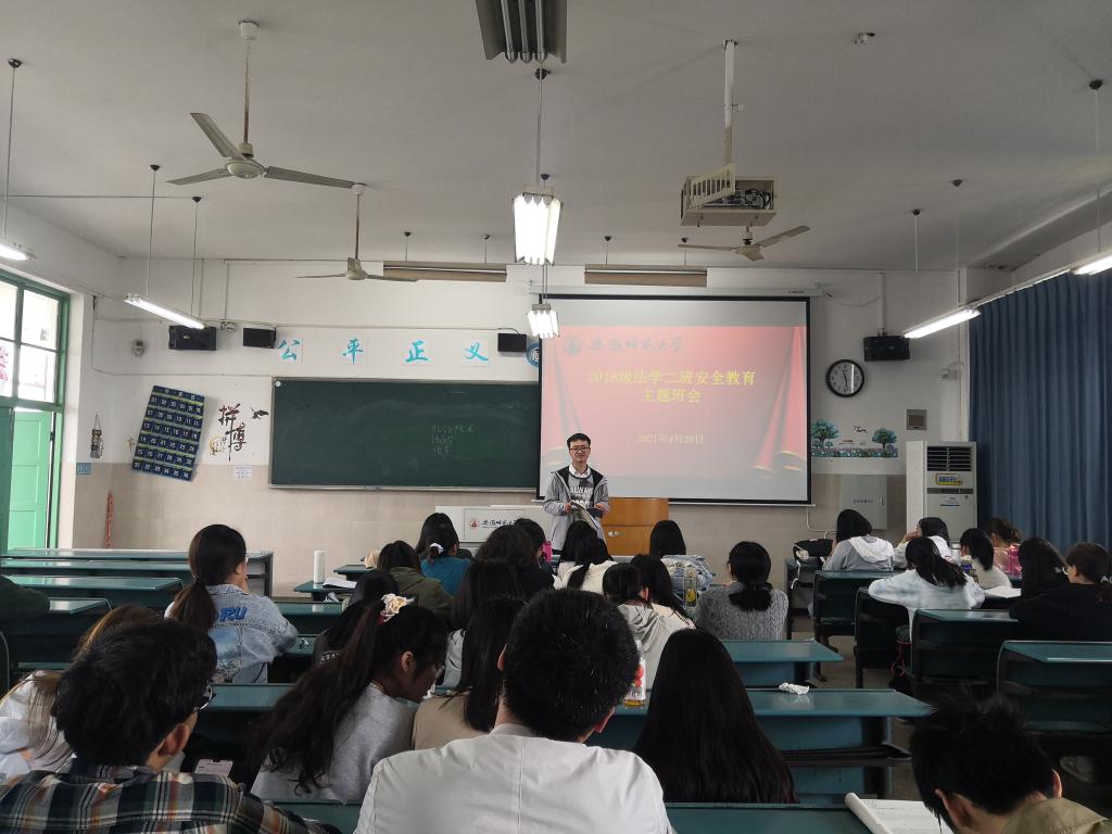 本网讯(36365线路检测中心 张楠楠、张雯)4月28日上午,2018级法学专业在教学楼召开了劳动节安全主题班会,班会由2018级法学专业辅导员张楠楠主持,全体同学参加。
