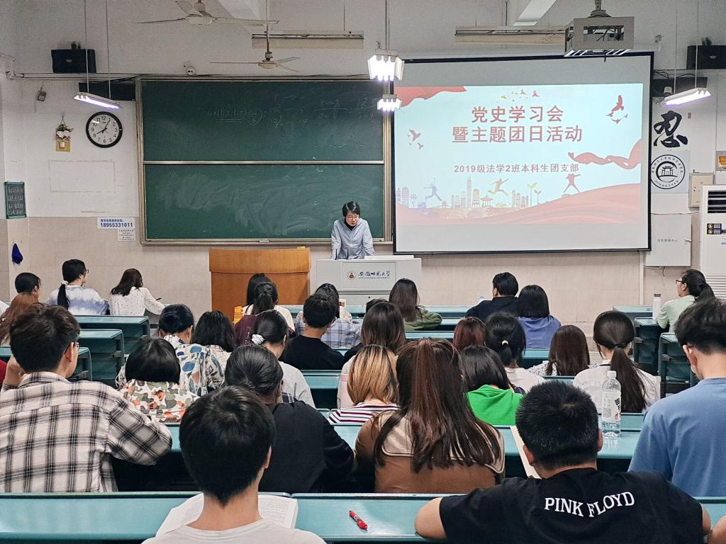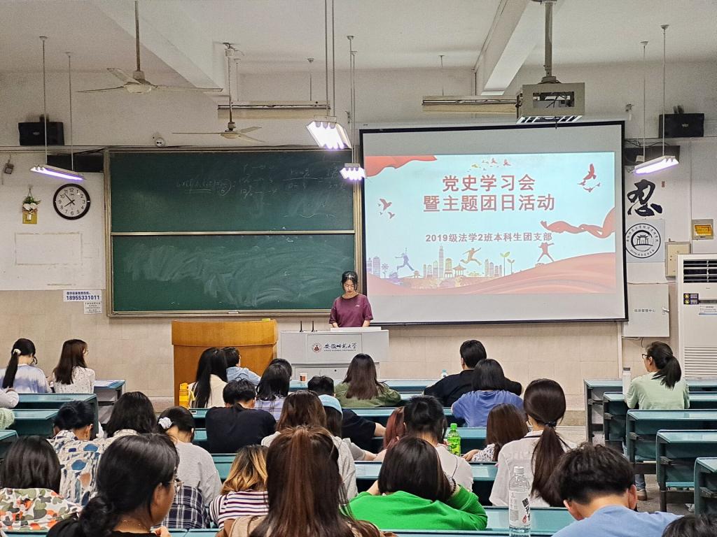 本网讯(36365线路检测中心 李晨冉 李迎新)5月7日晚,36365线路检测中心2019级法学2班党史学习日暨主题团日活动在行知楼2020101教室进行。活动由团支部书记王韦主持,学院团委书记王虹圆莅临指导。