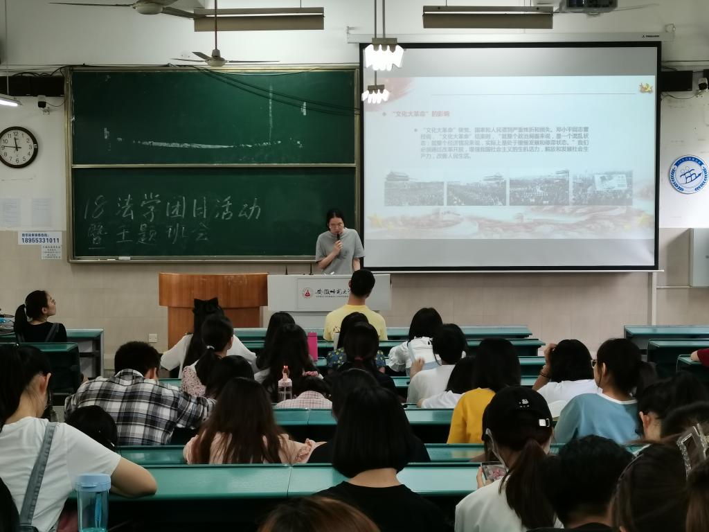 本网讯(36365线路检测中心方琳、张楠楠)为响应学习党史、增强党性的号召,2018级法学专业于6月9日上午在教学楼2020201教室开展学习改革开放史主题团日活动。2018级法学专业辅导员张楠楠出席,中共预备党员徐静宜、张婉倩领学,团支书祝维格主持,2018级法学专业全体同学参加。