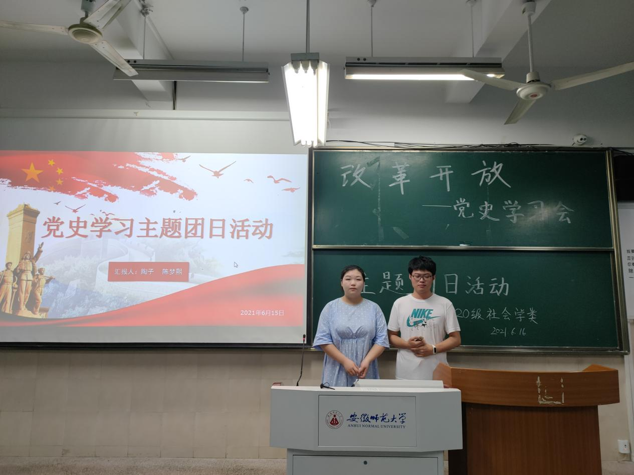 本网讯(刘金金 孙皓冉)为响应党史学习的号召,增进同学们对中国改革开放史的了解,6月16日晚,2020级社会学类一、二团支部于行知楼2040101教室开展学习改革开放史的主题团日活动。本次团日活动由团支书陶子、陈梦熙主持,2020级社会学类全体同学参加。