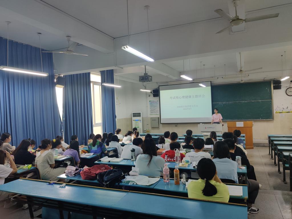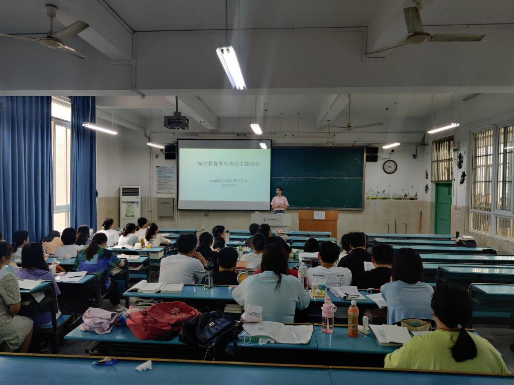 (本网讯 陈朋)为了进一步加强考风考纪教育,构建诚信校园,保证期末考试的顺利进行,倡导同学们“端正考风、严肃考纪、文明答题、诚信应考”。2021年6月23日下午,20行管(专升本)在本班固定教室召开了期末诚信考试教育暨考试周心理健康教育主题班会,本次大会活动由辅导员陈朋主持,全体学生参会。