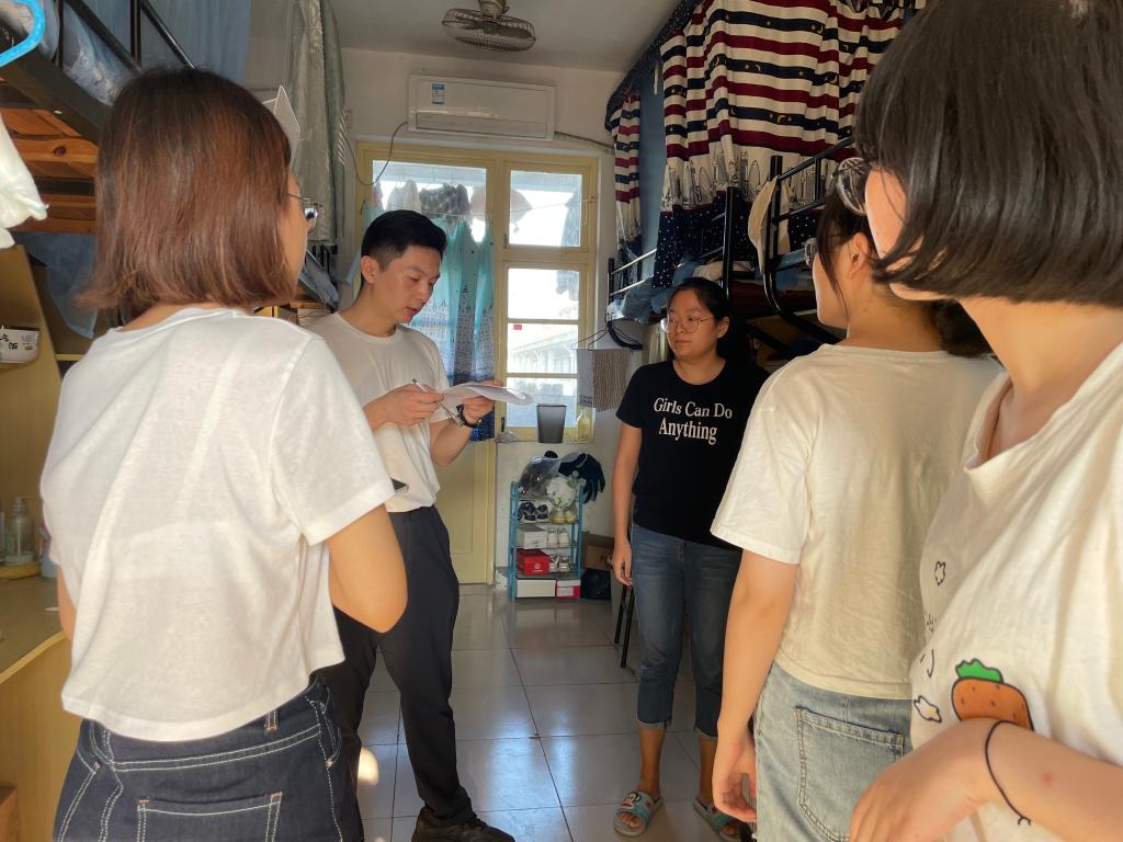 会后,辅导员桂彬同班委一起逐一走访班级寝室,对宿舍卫生情况和一些重点工作进行了进一步交流。