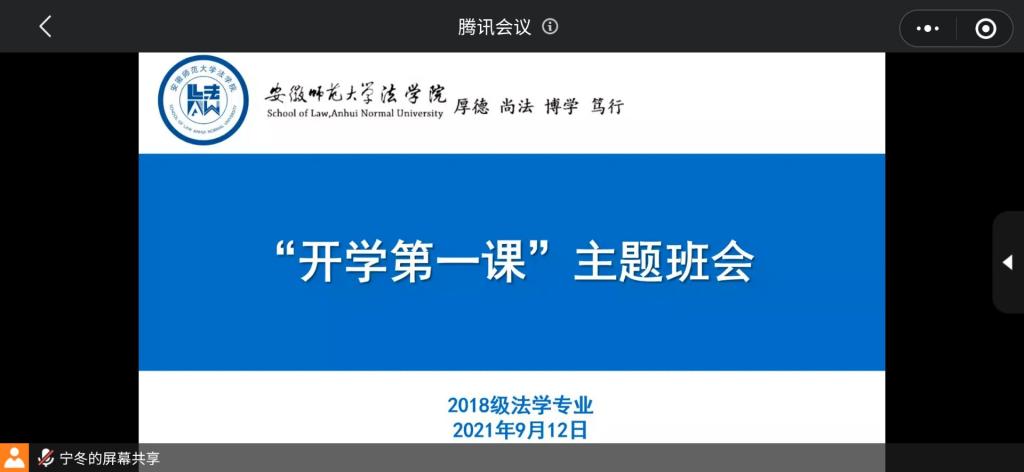 本网讯(36365线路检测中心 张楠楠 方琳)为进一步加强大学生思想政治教育,激发广大同学以饱满的精神、奋进的姿态投入新学期的学习和生活,2018级法学专业于9月12日上午召开“开学第一课”线上主题班会。会议由辅导员张楠楠主持,2018级法学专业全体同学参加。