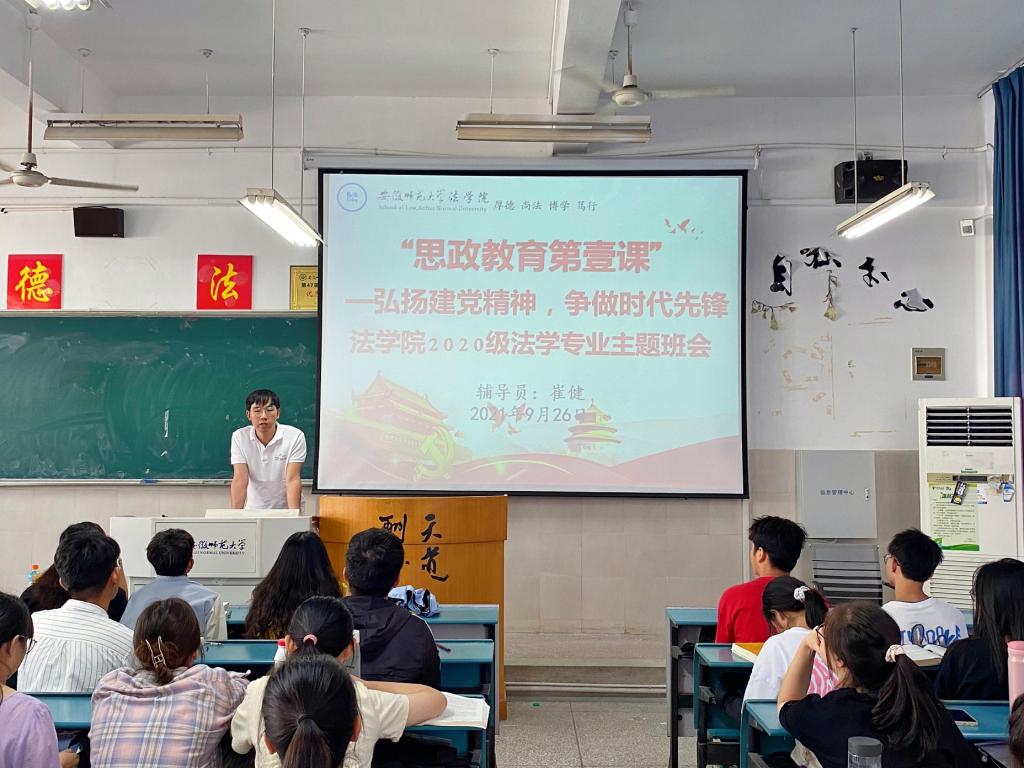 “思政教育第一课”——2020级法学专业各班成立班级党史学习小组,召开一次党史专题学习交流会,“学史明理、学史增信、学史崇德、学史力行”;辅导员崔健带领学生学习习近平总书记“七一”重要讲话精神。同时,积极组织同学们利用学习强国APP等巩固思政学习成果,做到学以正心、学以养德,增强青年人的志气、骨气和底气。