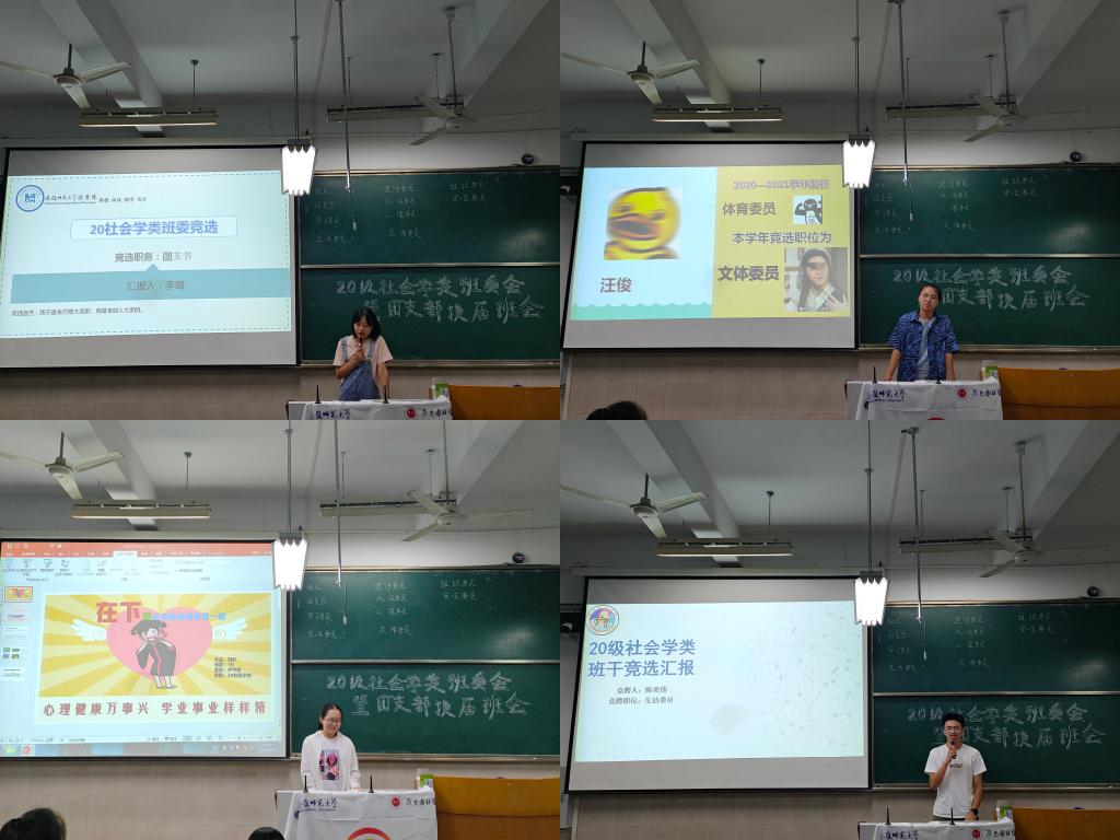 此次班委竞选共有21位同学参与,竞选者立足自身优势,明确自我定位、职位定位,依托PPT等形式畅谈未来工作规划。同学们的竞选演讲各有特点,或严肃庄重,或风趣幽默,极大地调动了班级气氛。最后,刘金金对换届大会进行总结,并对老一届班委表达感谢、对新一届班委寄予重托,换届大会顺利结束。