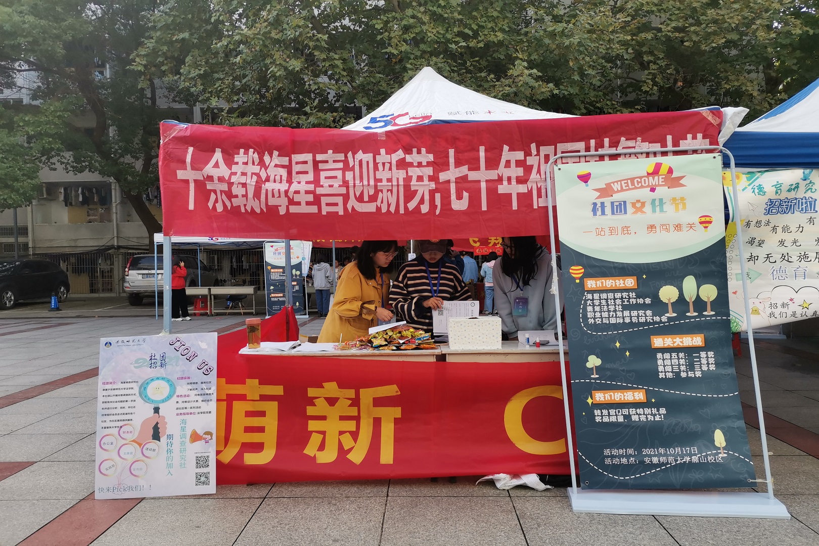 本网讯(海星调查研究社 吴诗雅)为壮大社团力量、宣传社团文化,为同学们提供一个展现自我的平台,10月17日,海星调查研究社分别在赭山校区和花津校区举办了社团招新活动,社团全体成员积极参与,并在充分准备下联合其他社团顺利开展社团文化节活动,各项工作有序进行。本次活动的目的在于希望越来越多的同学了解海星、加入海星。