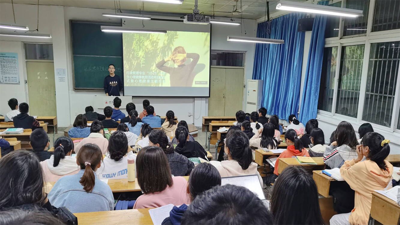 从“心”出发向阳生,悦纳自我相携行。为了促进同学们的心理健康发展,深入开展心理健康教育,10月25日晚,行政管理专业2021级1班在物理楼3101开展了“10.25”大学生心理健康教育活动月启动仪式暨心理健康主题班会。2021级行政管理专业辅导员赵悦及全班同学参会,心理委员杜杭樾主讲。心理委员杜杭樾用一个与心理问题相关的动画短片充分激发了同学们的兴趣,为大家介绍了心理健康的定义、四个标志和六大标准,并引用复旦投毒案等真实案例提高同学们对心理健康的重视程度。面对心理健康问题,杜杭樾提供了三条建议、六条忠告,运用言语和想象放松、分解法等。活动的结尾,杜杭樾给同学们分发了糖果并作总结,同学们在班级中感受到了家一般的温暖。本次班会的成功举办传播了心理健康知识,营造了班级积极健康的学习生活氛围,有利于保障同学们的心理健康安全,让同学们的心理朝着阳光的方向发展。