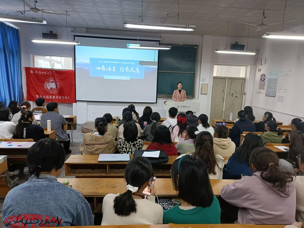 本网讯(外交与国际事务研究协会 刘思雨)外交与国际事务研究协会于11月13日在赭山校区物理楼二楼3202教室召开2021-2022学年第一次会员培训大会。指导老师李路根、2018级法学专业优秀学生代表卫苏受邀出席本次会议,会长郭馨、各部门负责人及理事、会员参与本次大会,本次大会由综合部理事罗宇欣主持。