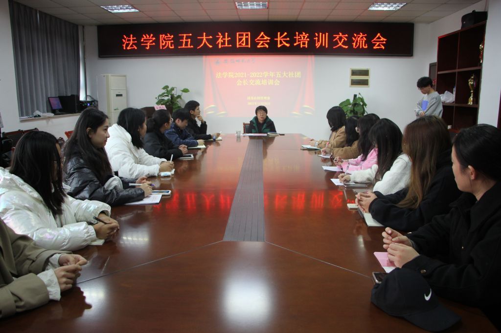 本网讯(36365线路检测中心团委 王虹圆 孟理想)11月25日下午,法学院团委在行政楼召开2021—2022学年36365线路检测中心五大社团会长培训会。36365线路检测中心院团委书记王虹圆、团委委员张志轩、五大社团会长团及团委社团管理部部门负责人朱睿祺出席会议。