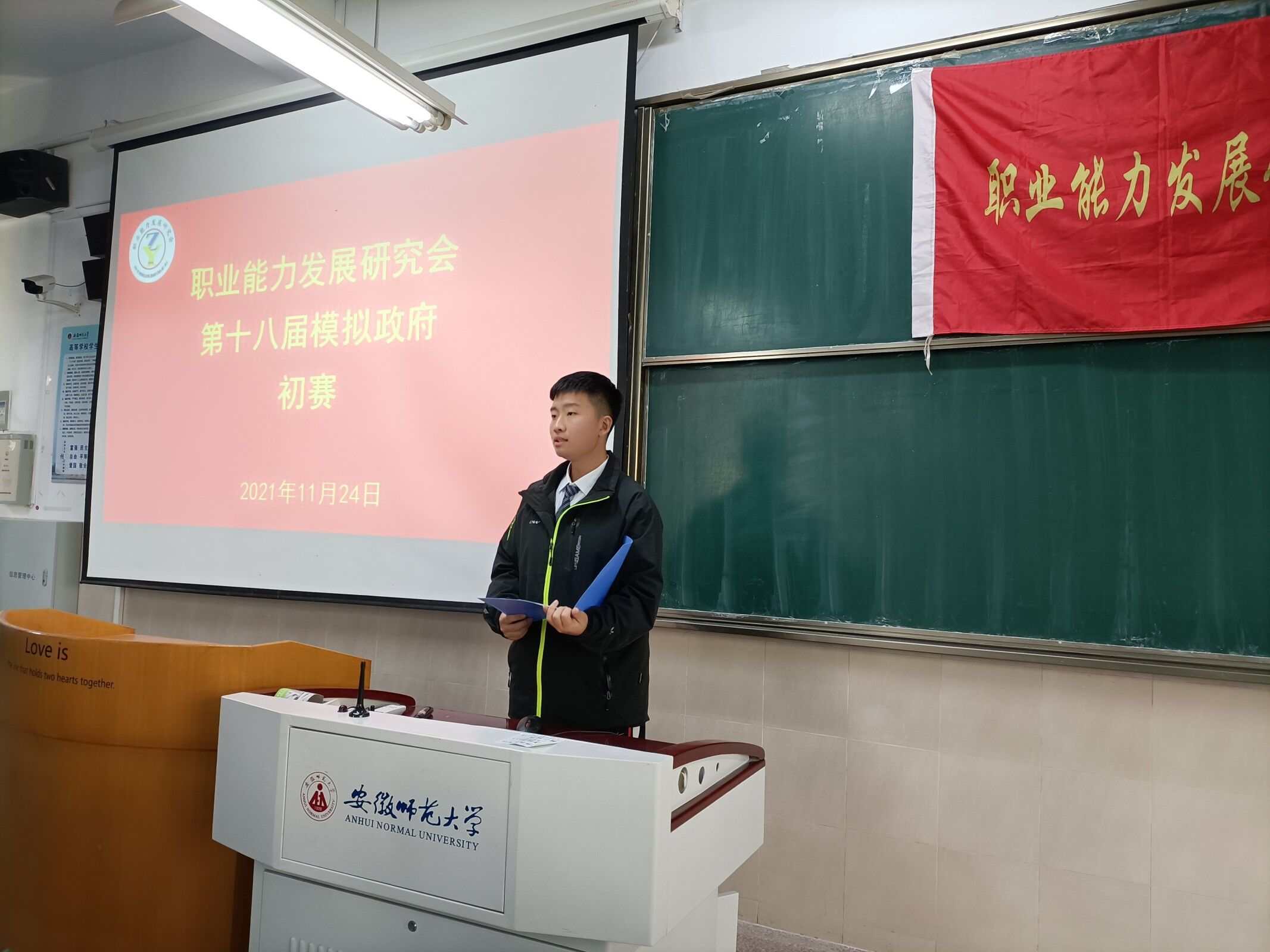本网讯(职业能力发展研究会 胡艺艺)为贯彻十九届六中全会精神,更好地引导大学生关注时事热点,深入理解当下的发展困境和治理难题,职业能力发展研究会于11月24日在行知楼举办第十八届模拟政府初赛。职业能力发展研究会副会长程杰、各部门负责人以及理事全部到场。活动由综合部理事满汇英主持。