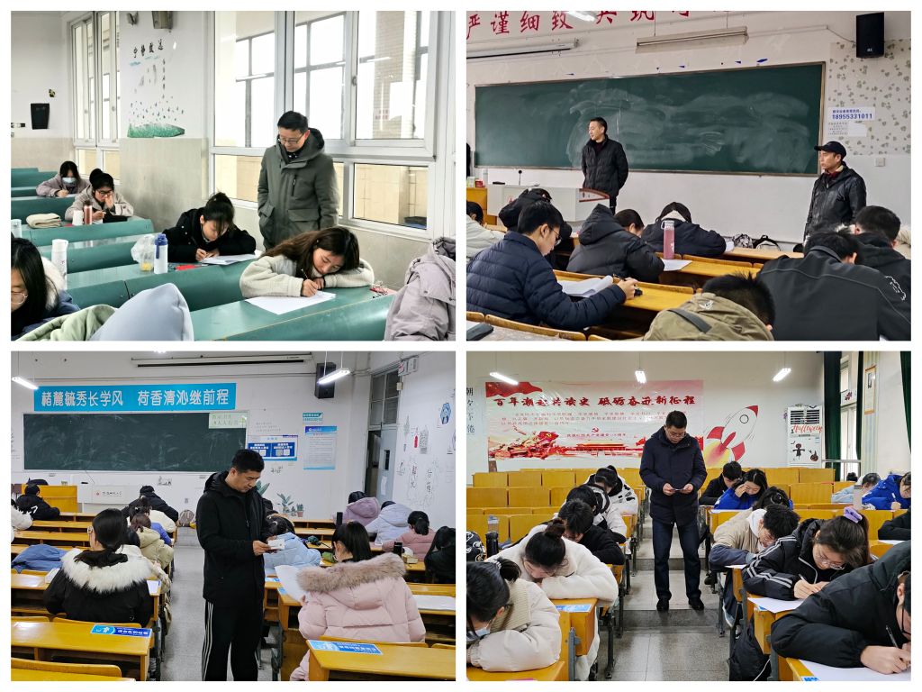 考风考纪工作是一项常抓不懈的工作,维护考试公正是每一位学院师生的共识。学院领导班子召开教职工大会布置期末考务工作,强化纪律要求和责任意识;严格落实巡考值班制度,发挥考务工作的育人内涵。学院教务办制定期末考试安排,并在工作群悉心提醒每一场考务人员,坚持将考务工作落细落实,强化了监考教师的责任意识。党委副书记和各年级辅导员通过“每周例会+主题班会”、“硬性班规制约+软性标语教化”、“监考+巡考”的“三个+”方式,带学《国家教育考试违规处理办法》(教育部令第33 号)、《36365线路检测中心学生违纪处分规定(修订)》(校办字〔2017〕39 号)等文件,逐步营造“不敢作弊、不能作弊、不愿作弊”的良好风尚。各班级学子严守考纪、坚守诚信,合理备考、沉着应考,让诚信意识内化于心、外化于行,涵养高尚道德品质。学院共画诚信考试“同心圆”,杜绝造假作弊,维护考试公正,让诚信考试常驻师生心间。