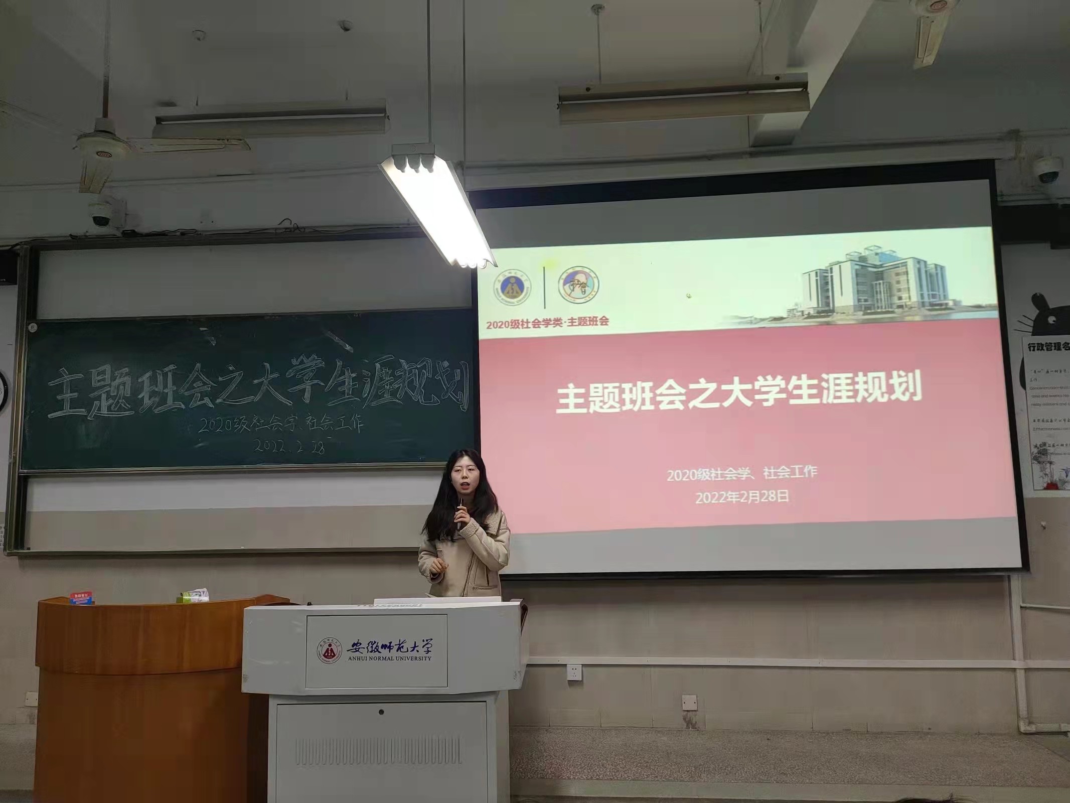 本网讯(刘金金 孙皓冉)为帮助同学们更好地规划未来,确定发展目标,2月28日晚,2020级社会学类于行知楼2020303教室召开主题为“大学生涯规划”的班会。本次会议由辅导员刘金金主持,2020级社会学和社会工作全体同学参加。