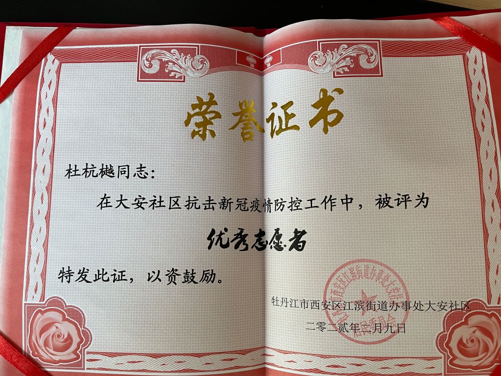 2021级行政管理专业杜杭樾同学来自黑龙江省牡丹江,在大学生活的第一个寒假,他主动参加了社区“返家乡”大学生志愿服务活动。工作期间,杜杭樾参与了“牡疫控”电子排查工作,一户一户地进行走访排查;协助进行全民核酸检测布场准备工作、场外引导服务工作,服务时长达50个小时。杜杭樾谈到自己的志愿经历时说:“家乡人的细致让我震撼,家乡人的爽朗使我动容。实际上无论是社区大姐的耐心指导,还是住户大哥的暖心咖啡,抑或是拿个水杯多喝热水的叮嘱,无不表现出社会对我们青年一代的殷切希望与热切关心”。