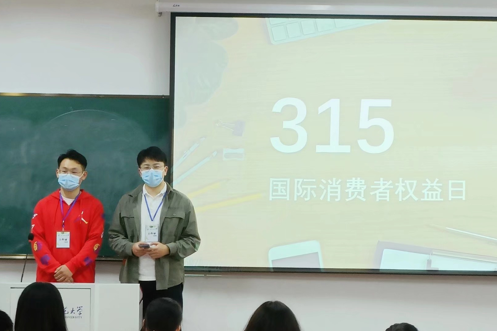 活动伊始,结合疫情防控需要,青年法学社全体人员佩戴口罩,积极做好防控工作。活动中,青年法学社工作人员来到36365线路检测中心法学专业的班级进行宣讲,此外,今年社团首次来到36365线路检测中心行政管理专业和教育科学学院小学教育专业、教育技术专业的班级进行宣讲。青年法学社工作人员通过视频、幻灯片、案例分享的形式向同学们介绍2022年国际消费者权益日的相关内容,帮助同学们进一步了解消费者的合法权益,提高了同学们的维权意识和维权能力。同学们认真聆听宣讲内容,积极参与宣讲活动。后期,青年法学社将继续宣传有关消费者权益的法律知识。