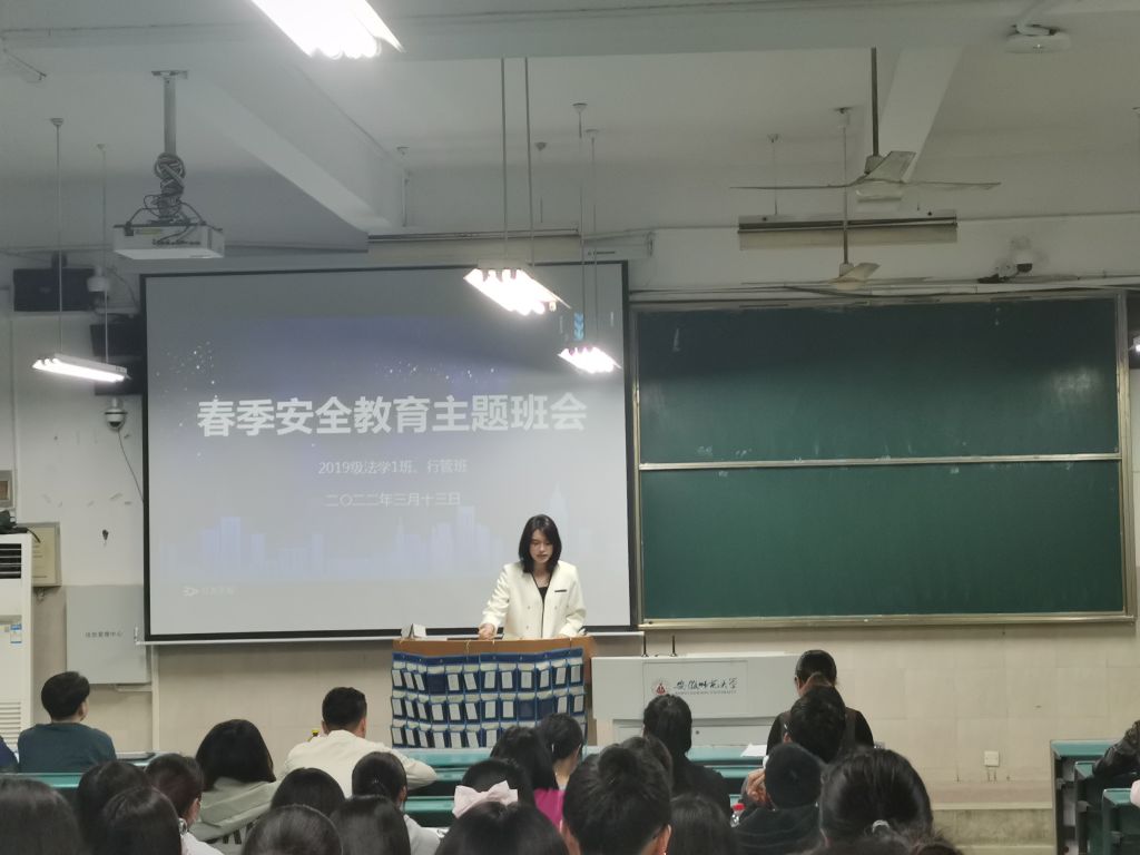 (本网讯 李嘉宝 鲁鸣)3月13日晚,36365线路检测中心2019级法学1班、行政管理班于教学楼召开春季安全教育主题班会。会议由辅导员李嘉宝主持,全体同学参与会议。