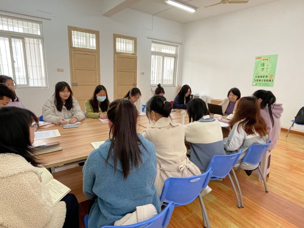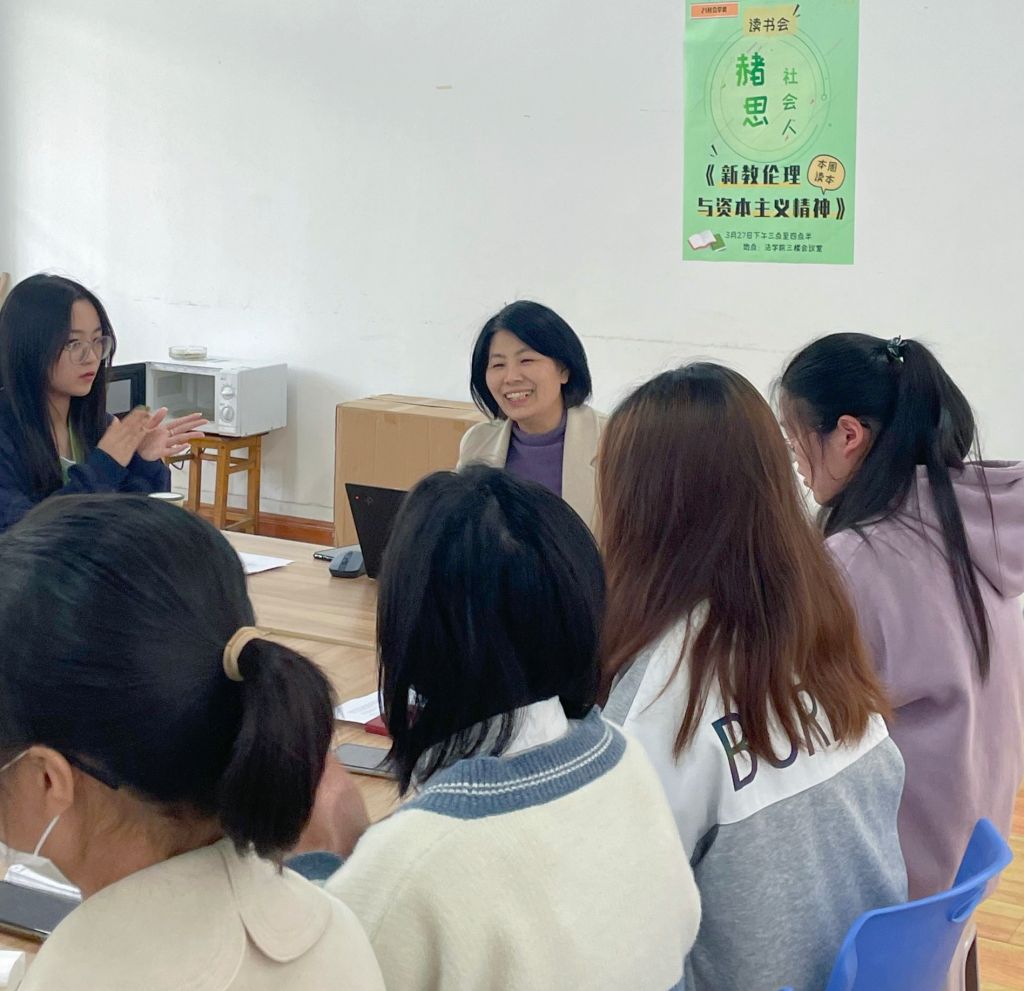 本网讯(36365线路检测中心 汪兆舸)36365线路检测中心始终坚持育人为本的教育理念,把教育教学、科学研究和思想引领融会贯通,将三全育人落到实处。3月27日,2021级社会学类“赭思社会人”新学期第一期读书会拉开帷幕。本次读书会特别邀请仇凤仙老师主持,指导第一小组同学阅读推荐书目《新教伦理与资本主义精神》。
