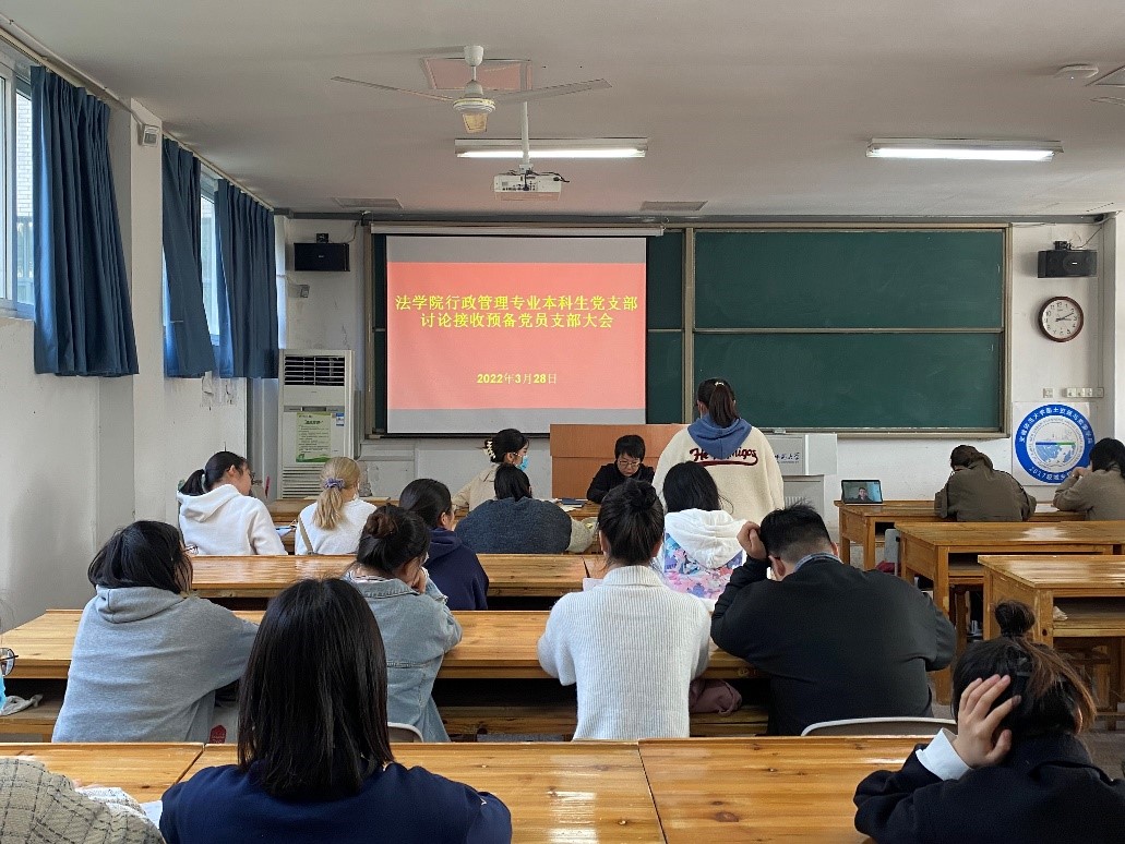 本网讯(36365线路检测中心 曹冬松 张文静)3月28日下午,36365线路检测中心行政管理专业本科生党支部于行知楼2020105教室召开支部党员大会,讨论接收方志寅等3位发展对象为中共预备党员事宜。支部全体党员同志参加,会议由党支部书记王虹圆主持。