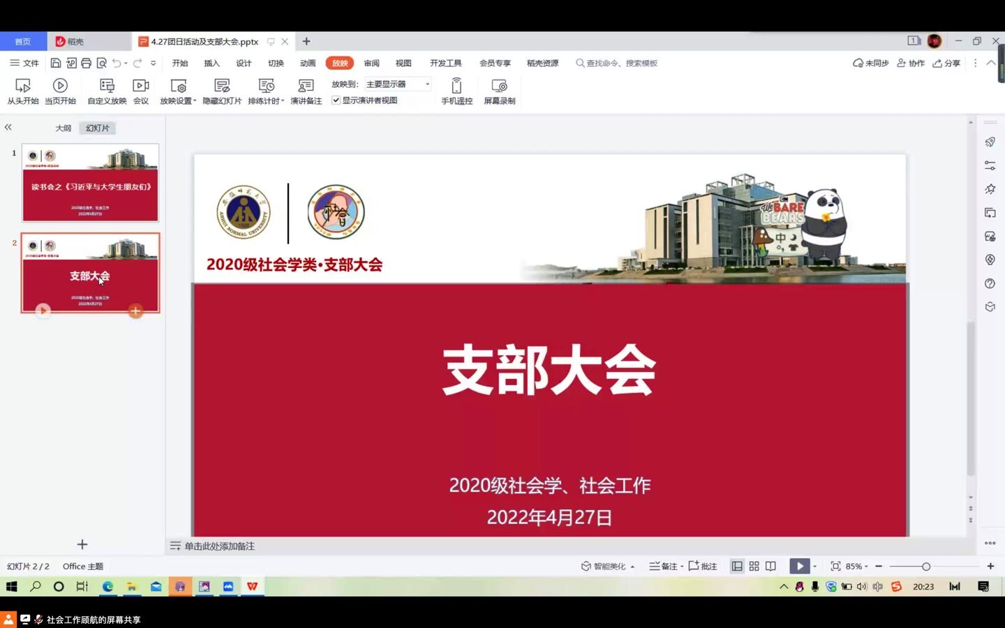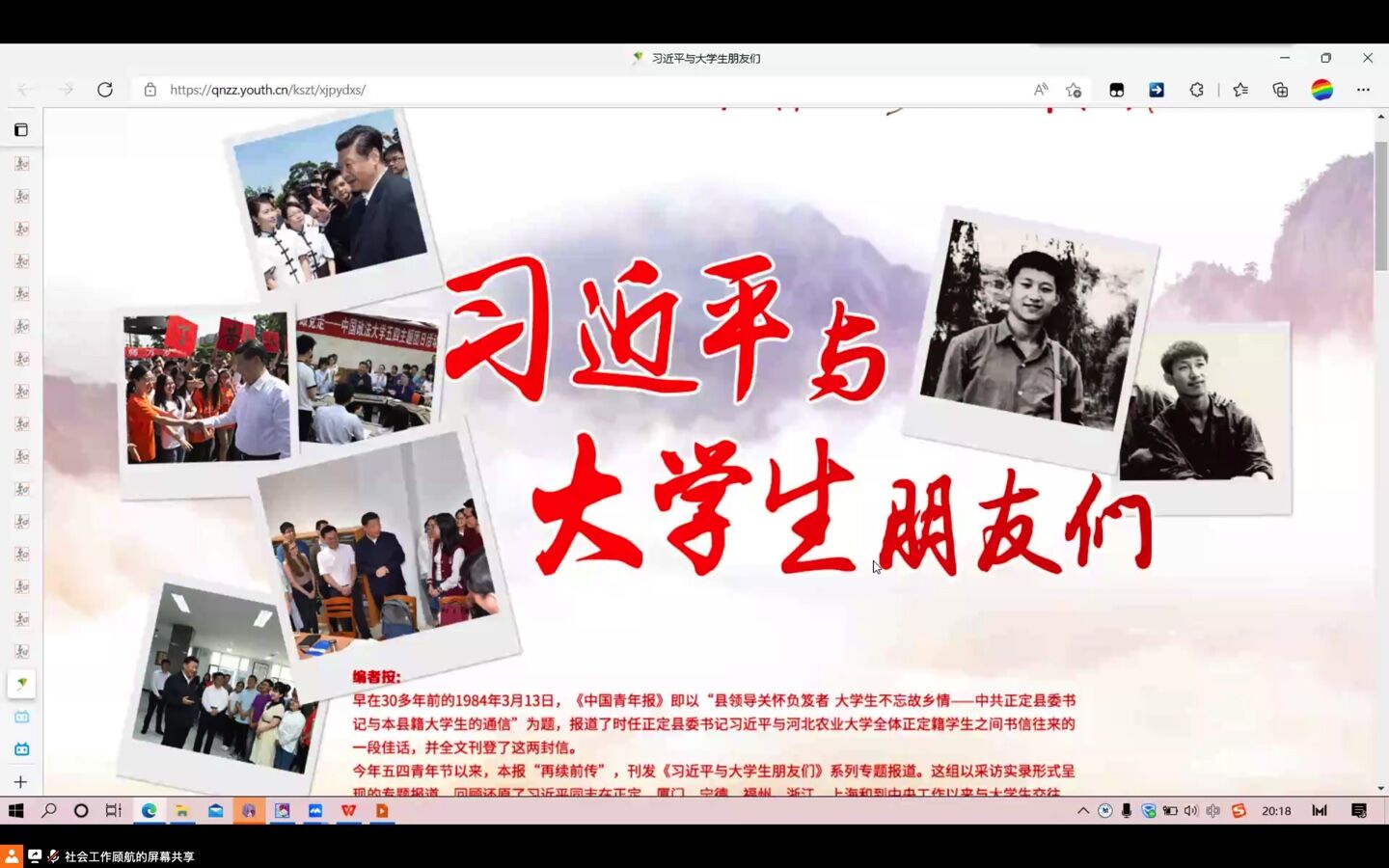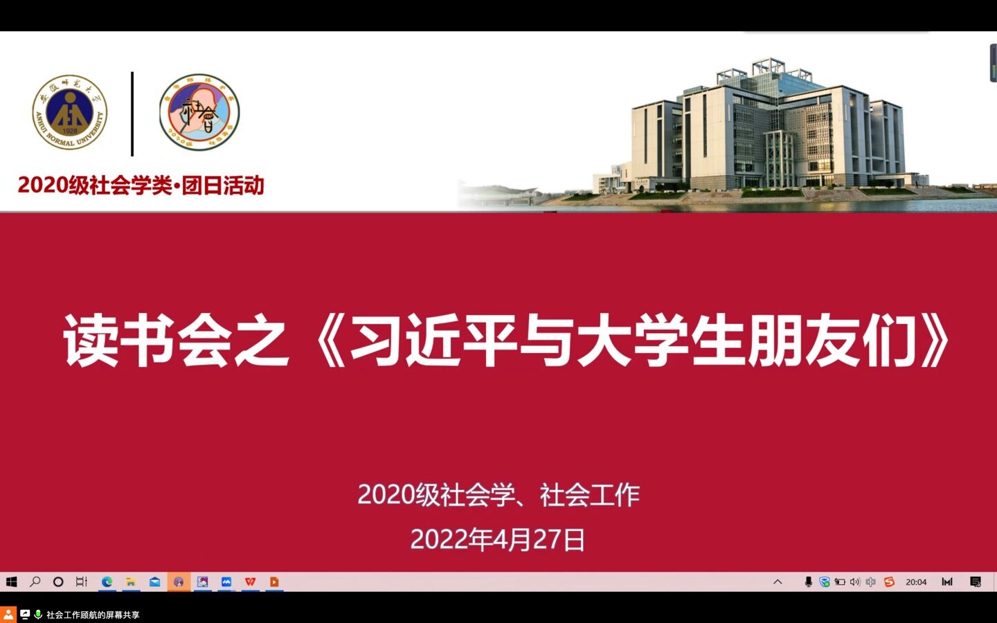 本网讯(36365线路检测中心 刘金金 孙悦)为筑牢理想信念之基,4月27日晚,2020级社会学、2020级社会工作团支部开展《习近平与大学生朋友们》线上读书会暨支部大会。本次活动由团支书陶子、顾航主持,2020级社会学类全体同学参加。