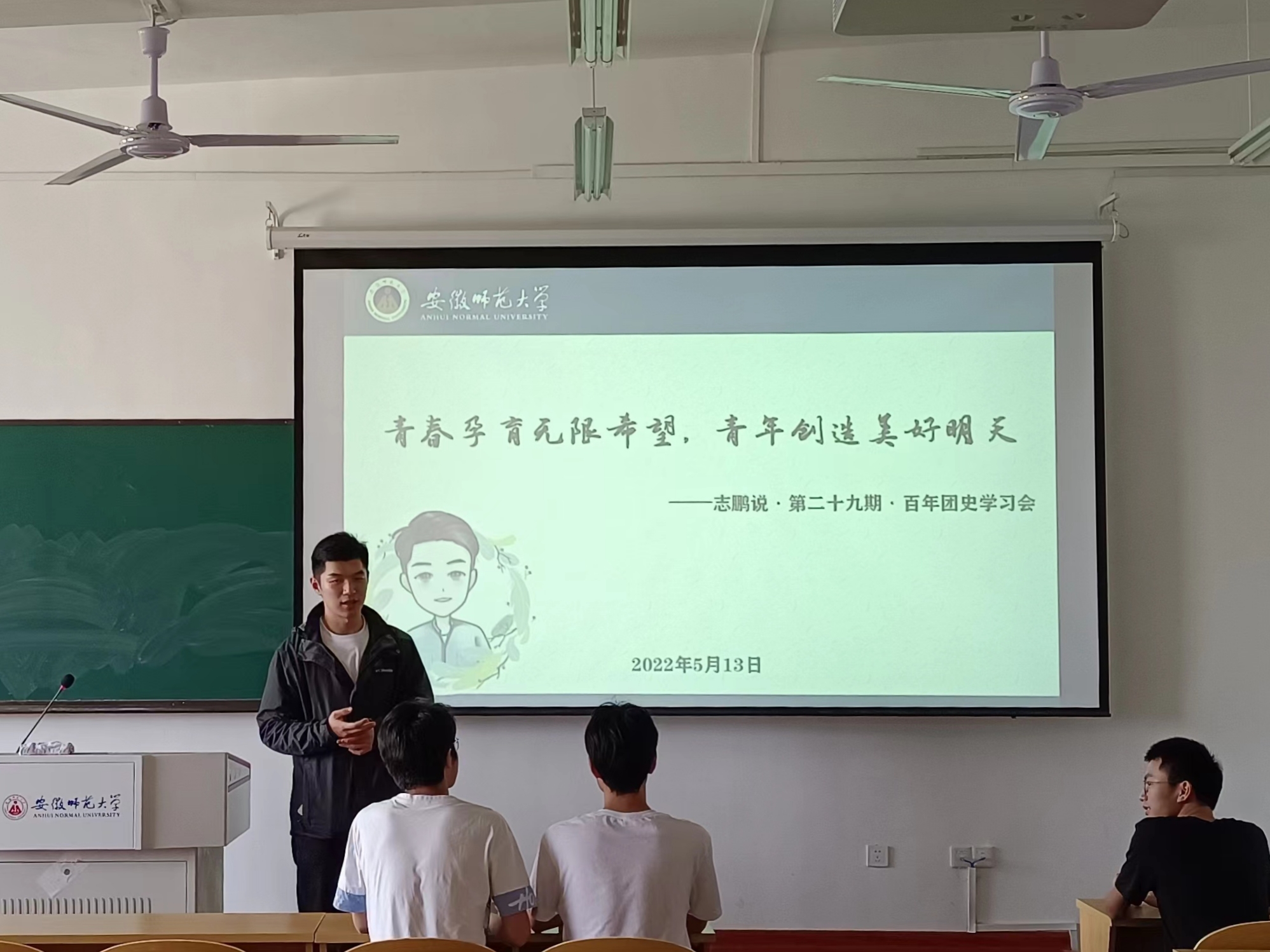 深化理念影响,凝聚青春力量。会议结束后,各班组织收看会议回放、重温讲话精神、分享心得体会,广大团员青年纷纷表示受到先贤光辉事迹鼓舞,深刻感悟中国青年代代相传的光荣传统,决意踔厉奋发,更加自觉坚定地踊跃投身“奋进新征程,建功新时代”的伟大洪流,戮力同心共创祖国美好未来,为成为堪当民族复兴大任的时代新人不懈奋斗。2021级法学专业辅导员蔡志鹏以“青春孕育无限希望,青年创造美好明天”为题,带领同学们开展百年团史学习会,品悟中国青年运动一以贯之的恢弘主流。