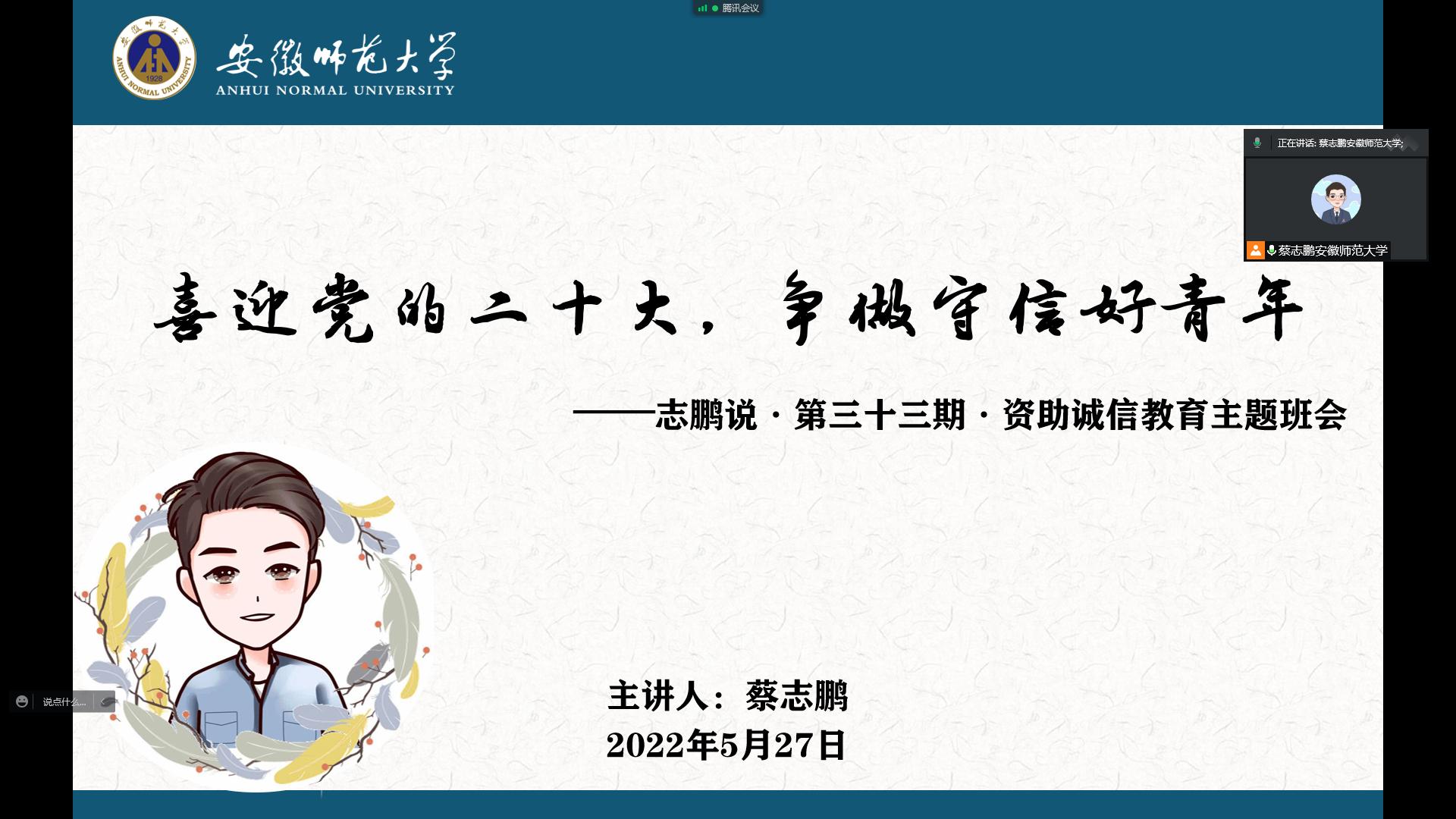 交流分享,召开诚信主题班会。学院各专业陆续组织召开诚信主题班会,班会上同学们以“我和诚信的故事”为主题开展交流分享,诠释心中对“诚信”的认知。在2021级法学专业的班会上,辅导员蔡志鹏结合家庭经济困难学生认定工作对同学进行了诚信教育,教导同学们做诚实守信、立志立德的新时代大学生。