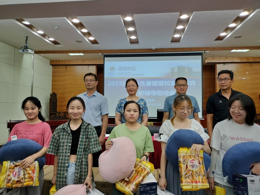 赵红首先赞扬了暑期留校备考学子不畏酷暑的精神与决心,其次就暑期留校安全教育对同学们寄予三点要求与希望。一是要求同学们严守疫情防控规定,务必履行学校暑期疫情防控要求。非必须不离芜,如有特殊情况离芜返芜需严格履行审批手续,且不得前往中高风险地区和疫情发生地所在市域。并按时每五天一次进行核酸检测。二是守护安全工作底线。强调同学们注意食品安全、身心安全、交通安全、网络安全、消防安全等。三是坚定理想信念,要制定计划、互相交流、补齐短板、争取进步!最后,她希望各位同学要珍惜学校和学院提供的留校机会,克服困难安心备考,有问题及时与辅导员和学院反馈,学院会尽力为同学们提供支持与保障,并预祝考研学子顺利上岸,得偿所愿!