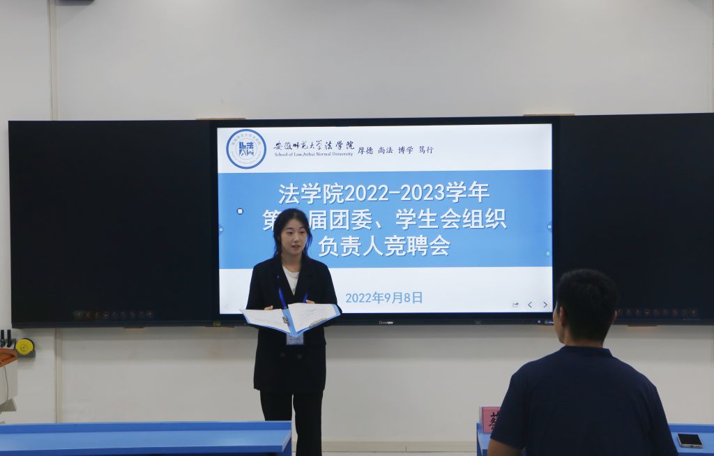 主持人介绍本次竞聘流程,分为PPT汇报和答辩两项。共有3名同学参与此次竞聘,20级两名学生竞选团委学生副书记、一名学生竞选团委委员。PPT汇报环节中,选手们语言流畅、仪态大方,从个人基本情况、竞聘优势、工作经历、未来工作展望等方面展开汇报。答辩环节,选手们面对老师的问题,沉着冷静、逐一作答,充分展示出他们对学生工作深刻的认识与思考。此次竞选坚持公平、公正、公开的原则,结果将于近期公布。