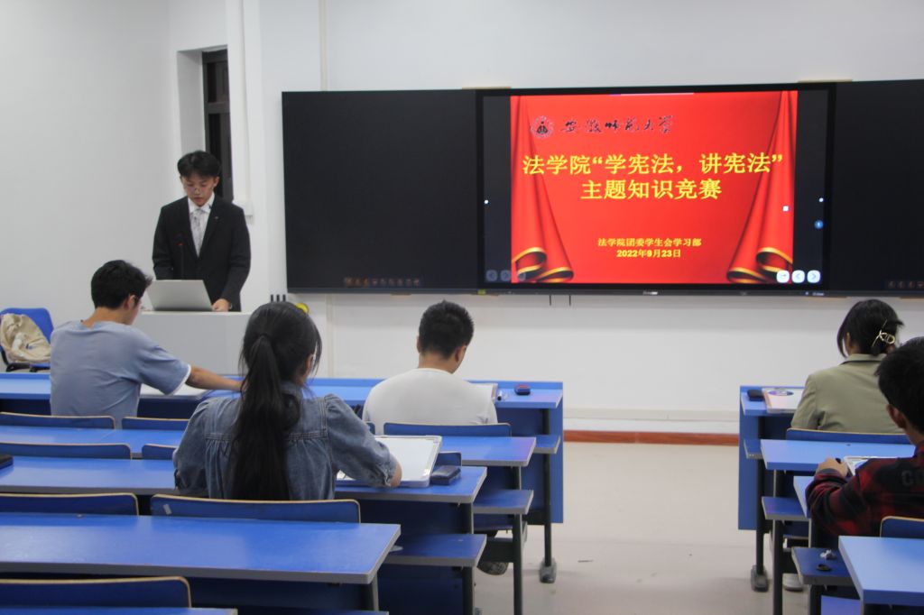 经过班赛与院级初赛两轮选拔,共7名同学进入决赛。院级决赛以回答选择题和判断题的形式开展,题目主要涉及党史知识、宪法沿革、守法意识等内容,考查了同学们对宪法明文规定的理解,对国家机关职能以及对宪法精神等方面的认知。比赛现场,选手们沉着冷静,思虑周全,反应迅捷,计时结束后,正确答案不断在白板上涌现。五号选手与七号选手因得分相同进入决赛加赛环节,展开最终角逐,对难度更大的题目发起挑战。本次比赛展现出同学们扎实的学术功底,各位选手通过答题对宪法知识进一步深入学习,获得成长。据悉,本次主题知识竞赛的获胜者将代表36365官网参加安徽省“学宪法 讲宪法”活动。