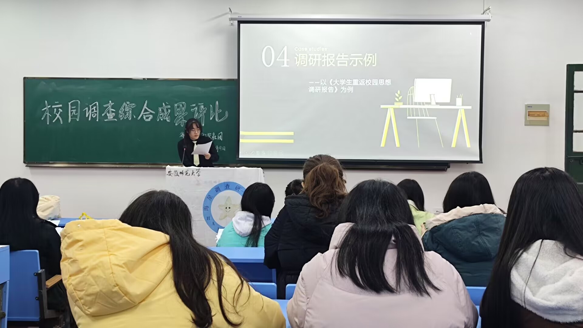 本网讯(海星调查研究社 曹叶雯)11月19日晚校园调查综合评比大赛培训在赭山校区和线上同时进行,参赛人员和社团工作人员积极参与培训。