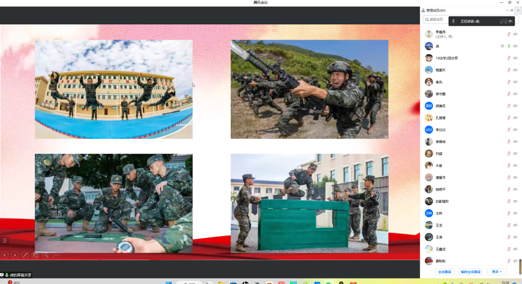 会上,李晨冉解读毕业生应征入伍的相关文件,就入伍基本条件、应征入伍程序以及毕业生入伍相关政策待遇等方面展开了详细讲解。姚俊虎介绍部队生活,分享自己的心路历程;刘辰子分享部队生活感悟,重点介绍毕业生征兵入伍津贴补助政策;张浩玮结合北京冬奥会执勤任务,从锻炼一副素质过硬的强健体魄、相处一批感情深厚的亲密战友、拥有一段终生难忘的美好回忆和提升意志品质等方面的成长与收获。三位同学用自己的亲身经历、收获成长以及切身变化让参加交流会的同学了解部队生活的多姿多彩与大学生应征入伍的意义,并鼓励大家积极参军入伍,从军人身上学习顽强的意志和坚毅的品格。