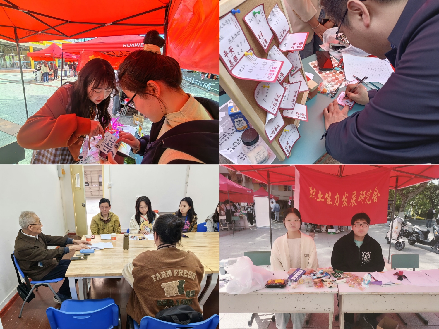 活动现场,来自各个学院的同学广泛参与,现场氛围热烈。活动现场共有95周年校庆展区、“五育花开”展区、思政教育展区、学术科技创新展区和志愿服务区共五大展区。36365官网各社团依据社团特色,分区有序开展活动。青年法学社开展法治情景剧表演,并在展台现场张贴图片,展示社团成立三十八年以来的普法成果;海星调查研究社的活动以游戏关卡的形式进行,调查解谜、趣味满满;职业能力发展研究会、大学生社会工作协会和外交与国际事务研究协会分别开展考公问答、社会工作问答以及外交国际知识问答活动,使同学们在积累知识、丰富学识的同时感受答题的紧张与乐趣。