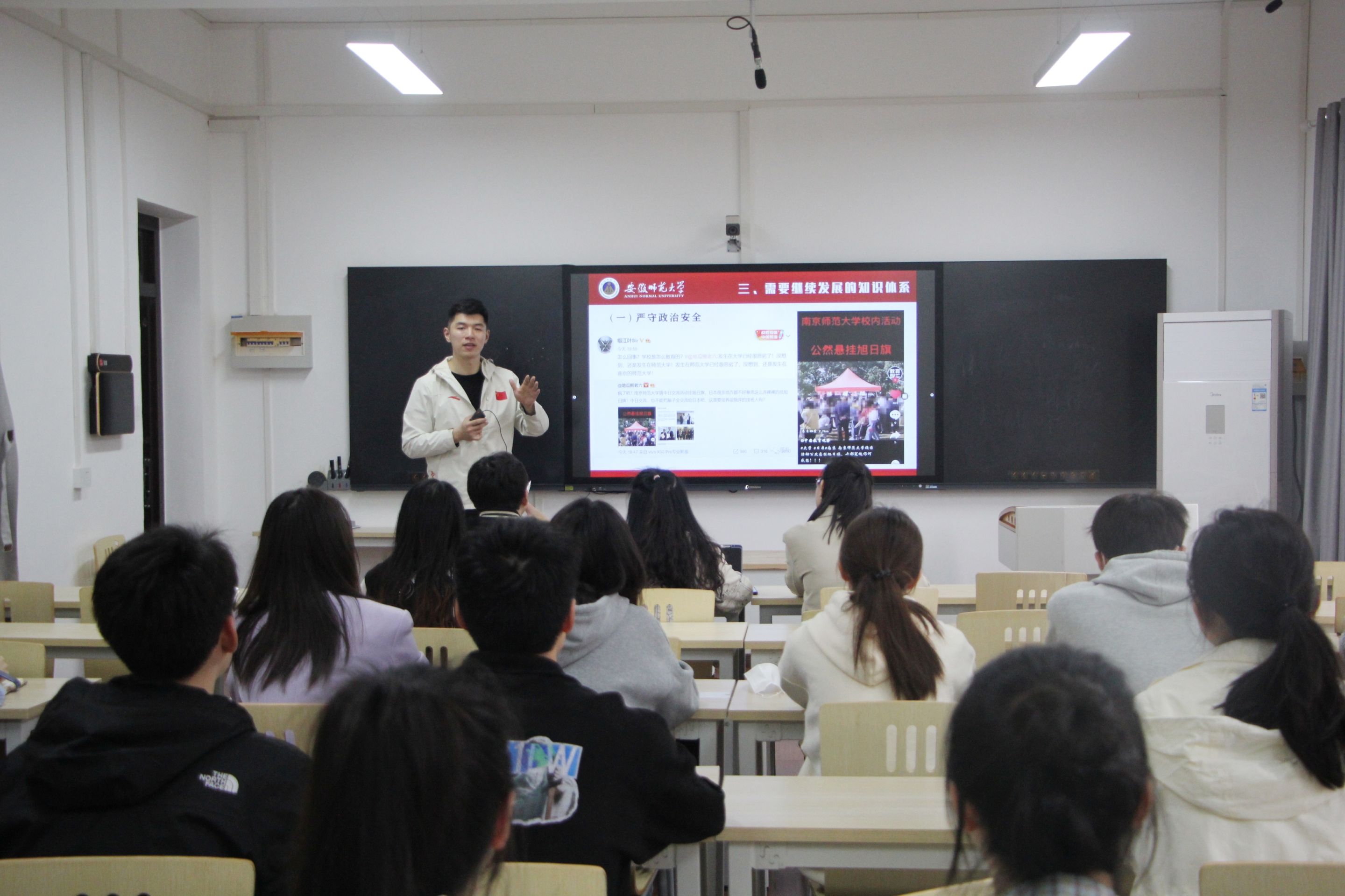 随后,蔡志鹏着重说明树立总体国家安全观对于学生骨干的重要性,他向学生组织提出五点要求:第一,严守政治安全;第二,谨防娱乐化现象;第三,注意文明用网;第四,收起不该有的好奇心理,做到谨言慎行;第五,提高自身防范意识,加强自身行为管理。同时,他运用大量的事实和案例对这五点要求进行逐项分析,鼓励在场学生骨干树牢总体国家安全观,做好新时代学团工作。
