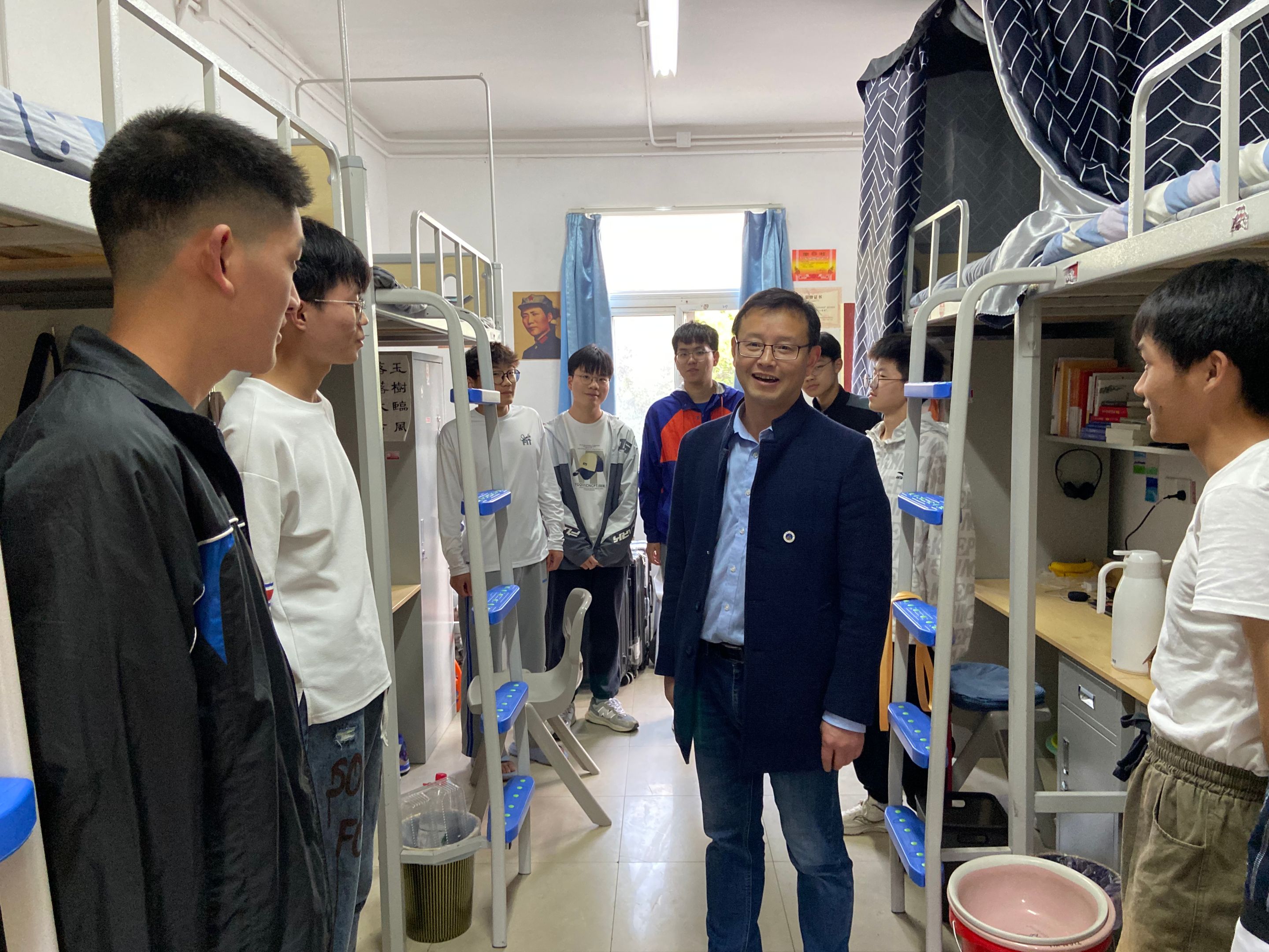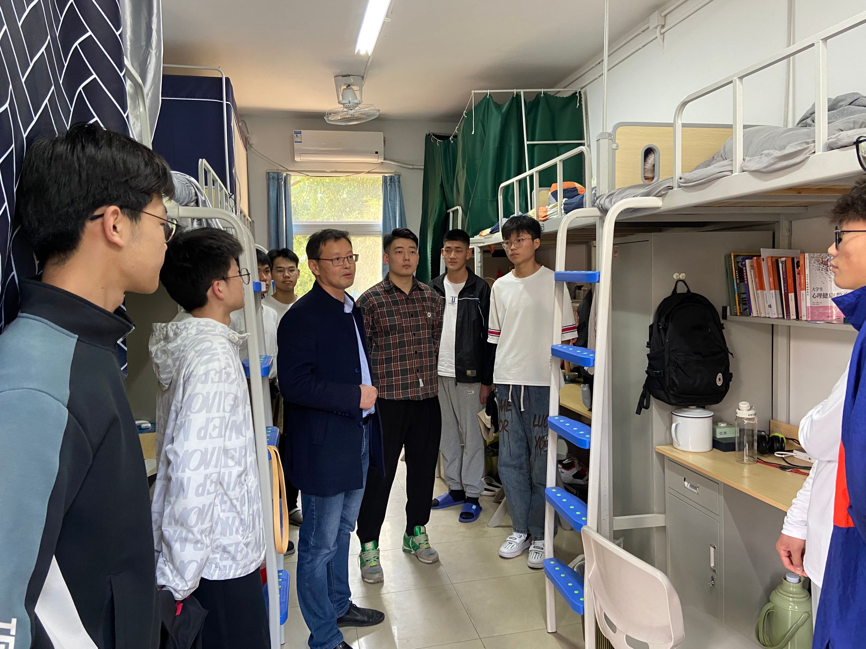 张玉新深入学生寝室,检查寝室文化环境,了解学生学习生活等情况。他指出,良好的寝室文化环境不仅关系到学生身心健康,也深刻影响到学生的成长和发展,寝室文明建设是培养大学生健康、文明、向上的良好习惯。他所到学生寝室与同学深入交流,了解学生学习生活和“五一”假期安排等情况,提醒同学们假期注意安全,鼓励同学们假期不忘学习和充电。