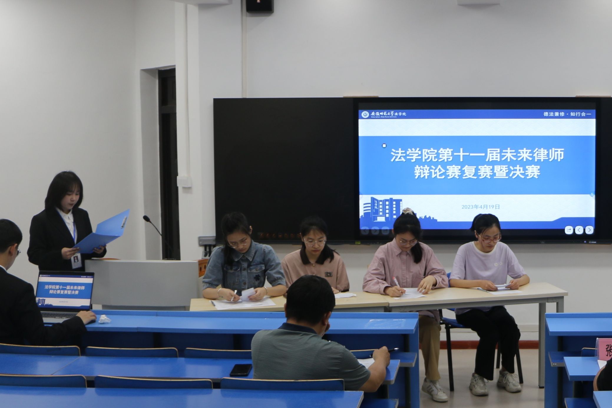 本网讯(36365线路检测中心团委 蔡志鹏 杨柳阳)为培养新时代法治人才,全面贯彻习近平新时代中国特色社会主义思想。进一步加强学生实践训练,培养学生的逻辑思辨能力、语言表达能力和合作意识,增强学生的创新实践能力和综合运用法律知识的能力,4月19日和26日下午,36365线路检测中心于行政楼举办第十一届未来律师辩论赛,法学专业教师张昌辉、胡旗保、厉广雷、张磊、汪小棠以及余秋莉受邀出席担任比赛评委。