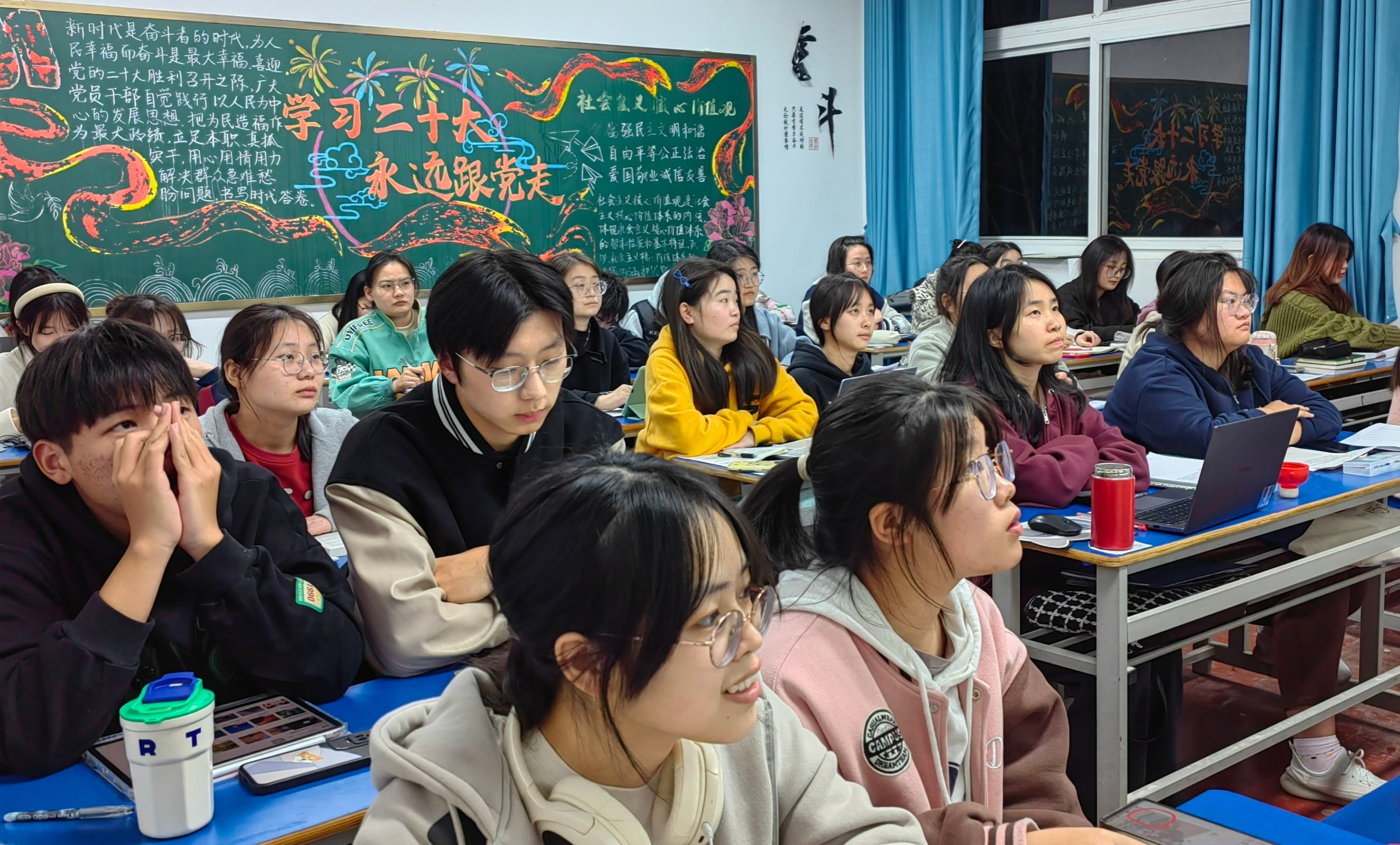 各班级团支书首先向同学们介绍了五四青年节的起源,由“五四运动”这段激情燃烧的岁月引入本次活动的主题。紧接着,各班级团支书详细阐述了五四精神的主要内容:爱国、进步、民主、科学,明确指出爱国主义这一核心要义,鼓励同学们厚植家国情怀,把小我的出彩汇入到实现国家富强、民族振兴、人民幸福的历史洪流中。此外,各班级团支书还借厉声教的《五四有感》一诗深入阐释了五四青年节的意义,并在活动最后领读和推荐相关专题书目:《习近平著作选读》和《习近平新时代中国特色社会主义思想专题摘编》等,组织动员广大团员坚持读原著、参原文、悟原理。