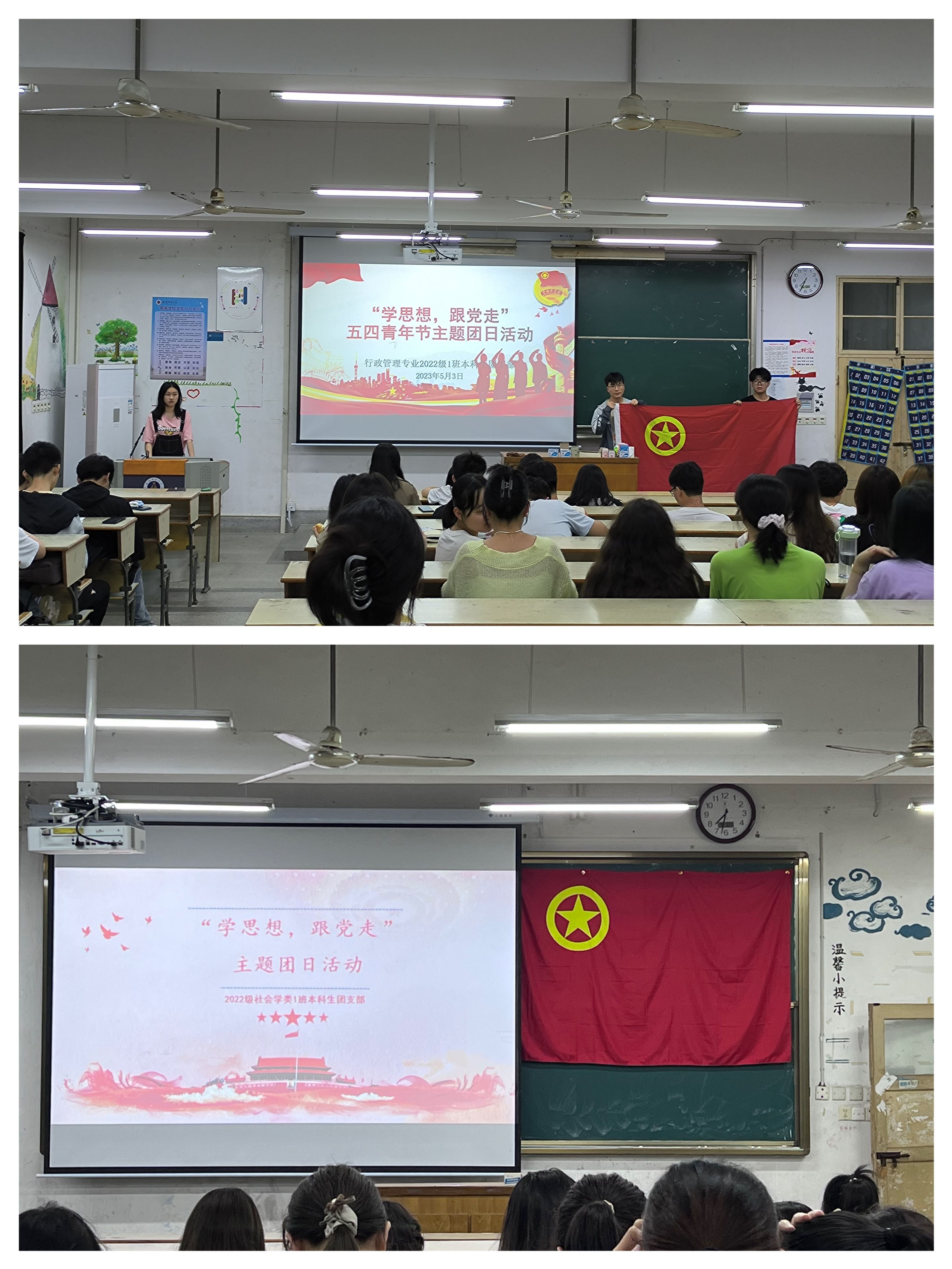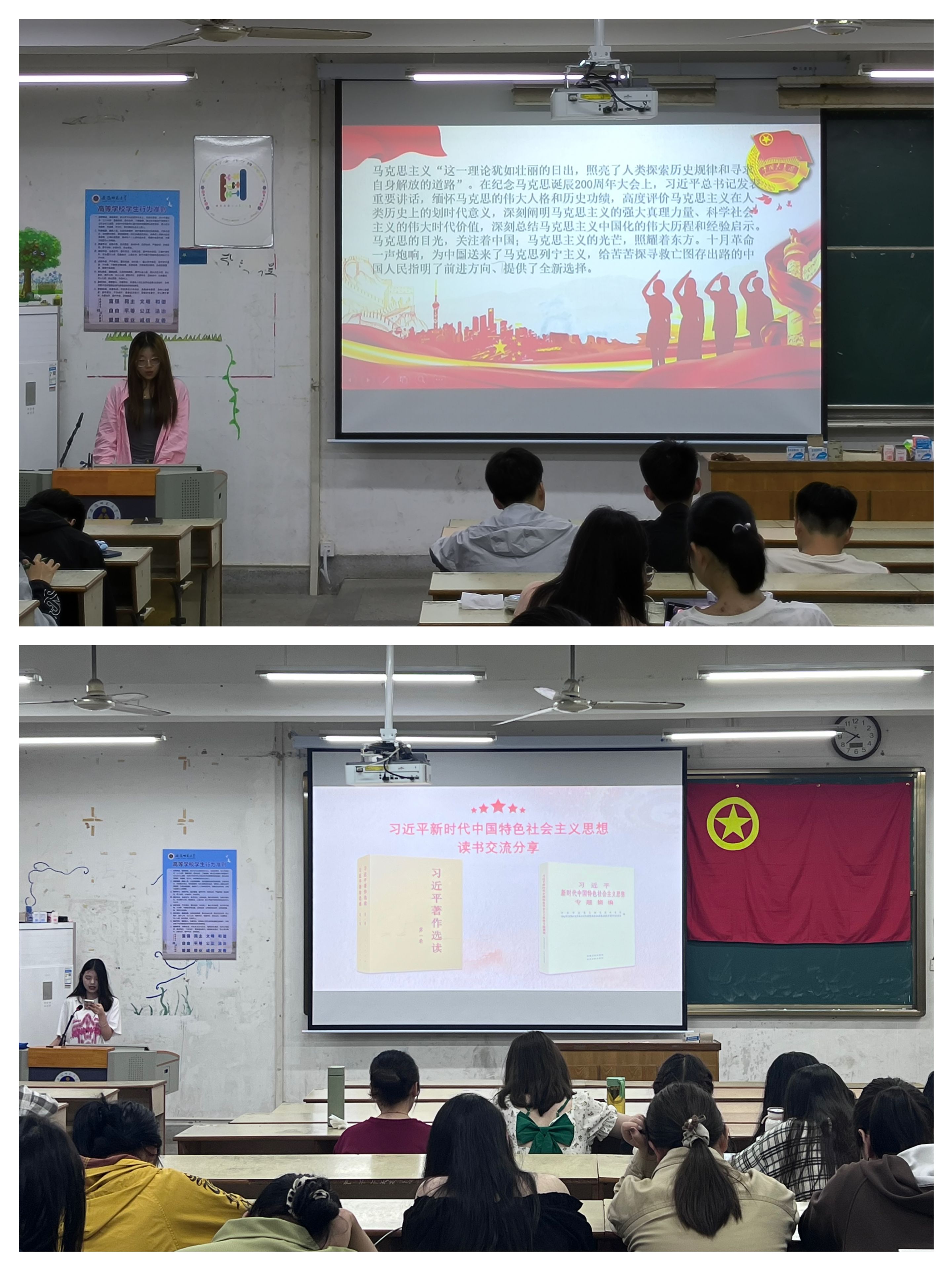 爱国、进步,理论先行。在各班团支部书记的带领下,班级同学从习近平新时代中国特色社会主义思想的理论形成背景、核心内容、重要意义、学习要求等几个方面,进行了较为系统全面的学习。团支书杨晨、薛子俊以《习近平著作选读》《习近平新时代中国特色社会主义思想专题摘编》《学习和实践马克思主义》三本书引入主题,从编写纲目、思想内容、主要篇目等三个方面向学生详细解读了书本内涵。团支书李家榕、关晓楠向同学讲解了马克思主义的重要理论以及现实意义。从是什么、为什么、怎么做三个方面阐释马克思主义对当代中国、当代青年的重要价值,鼓励广大青年要领悟时代内涵,担当时代重任,学习并传承伟大的五四精神。在学生交流感悟环节,行政管理专业董文博发言:学习习近平新时代中国特色社会主义思想,不仅仅是宏观的口号,更要落到微观实处,只有理解并将理论运用到实际,才能更好地感悟党的战略思想,发扬伟大的五四精神。
