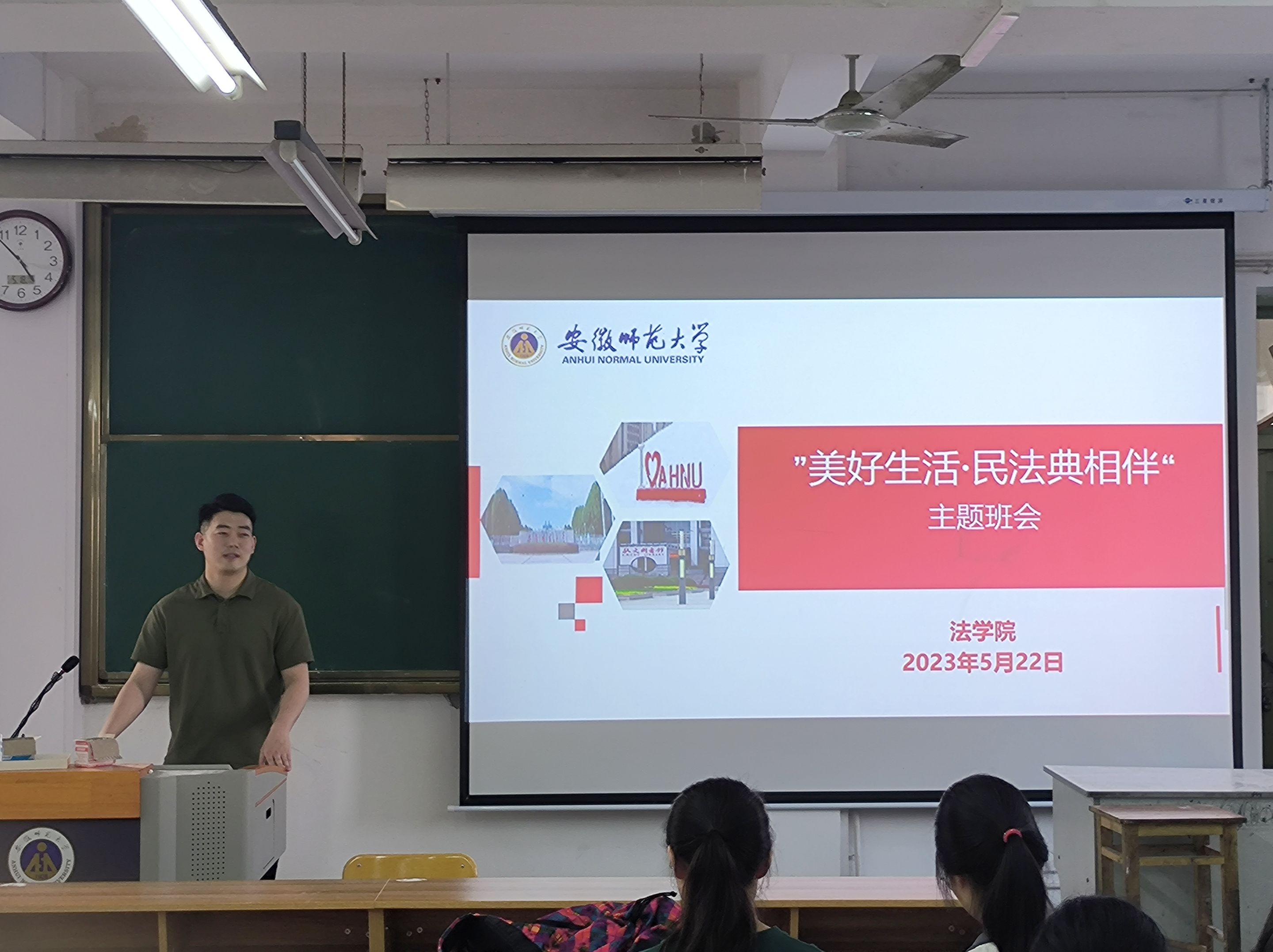 民法典走进“思政小课堂”。36365线路检测中心各年级专业辅导员开展主题“美好生活·民法典相伴”主题班会。2022级法学专业辅导员朱慧从“民法典:‘社会生活的百科全书’”“民法典如何守护我们的一生”“常见法律问题及其解答”和“做《民法典》的学习者”四方面深入浅出地指出《民法典》的重大意义,她将民法典具体条款与典型案例相融合,结合专业讲解和情景式体验,围绕民法典与生活间的紧密联系以及民法典对我们一生权益的保护等内容,引导学生深刻领会学习民法典,助力增强民法典宣传教育的实效性。2022级行政管理、社会学类专业辅导员刘沐景表示,希望各位同学深入理解贯彻实施民法典的重要意义,学好用好《民法典》,当好《民法典》的践行者、宣传者和推动者,他鼓励同学们以实际行动助力《民法典》从纸面走入现实,更好推动民法典全面有效实施,使民法典融入生活点滴。