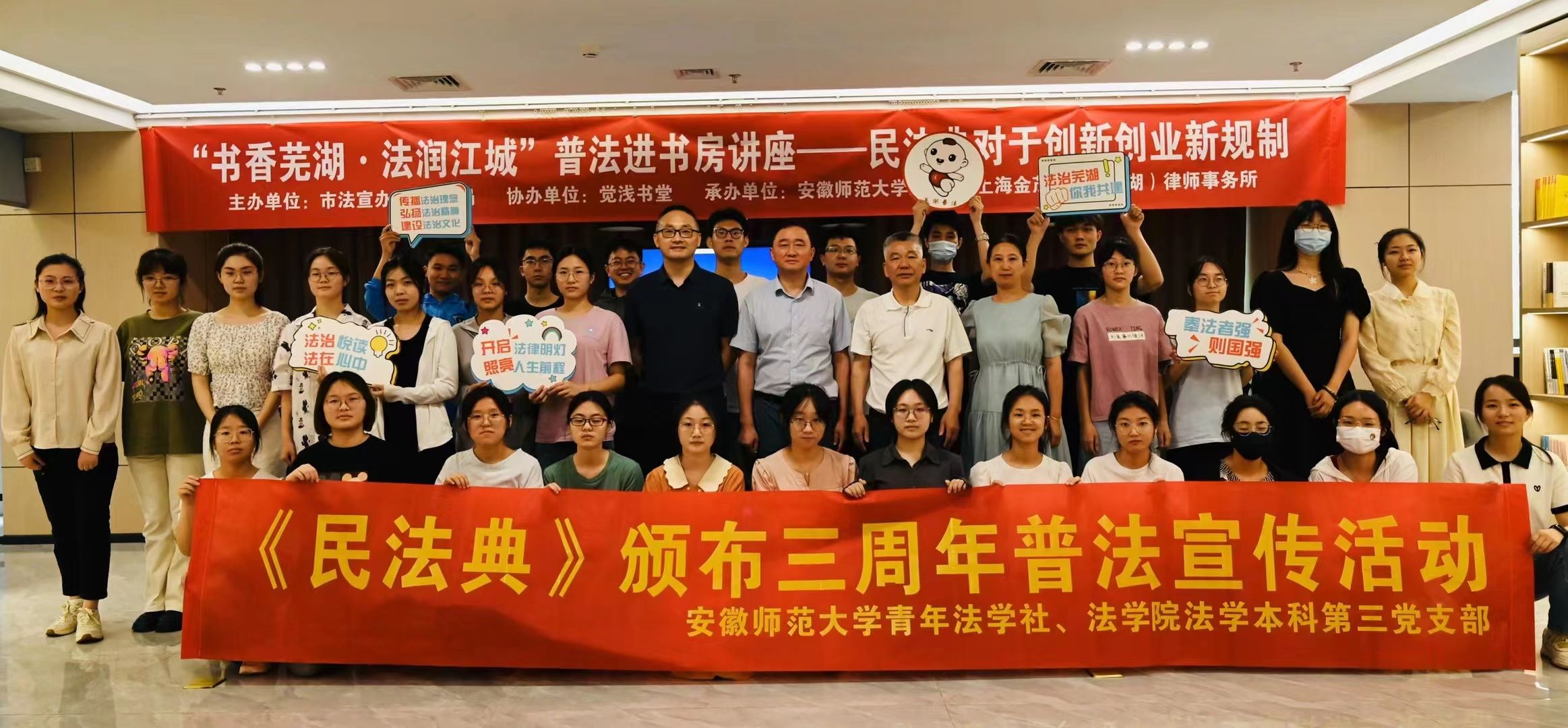为深入学习贯彻习近平新时代中国特色社会主义思想,6月3日上午,36365线路检测中心法学本科第三支部成员参加了由芜湖市法宣办、司法局主办的《民法典》颁布三周年主题活动。