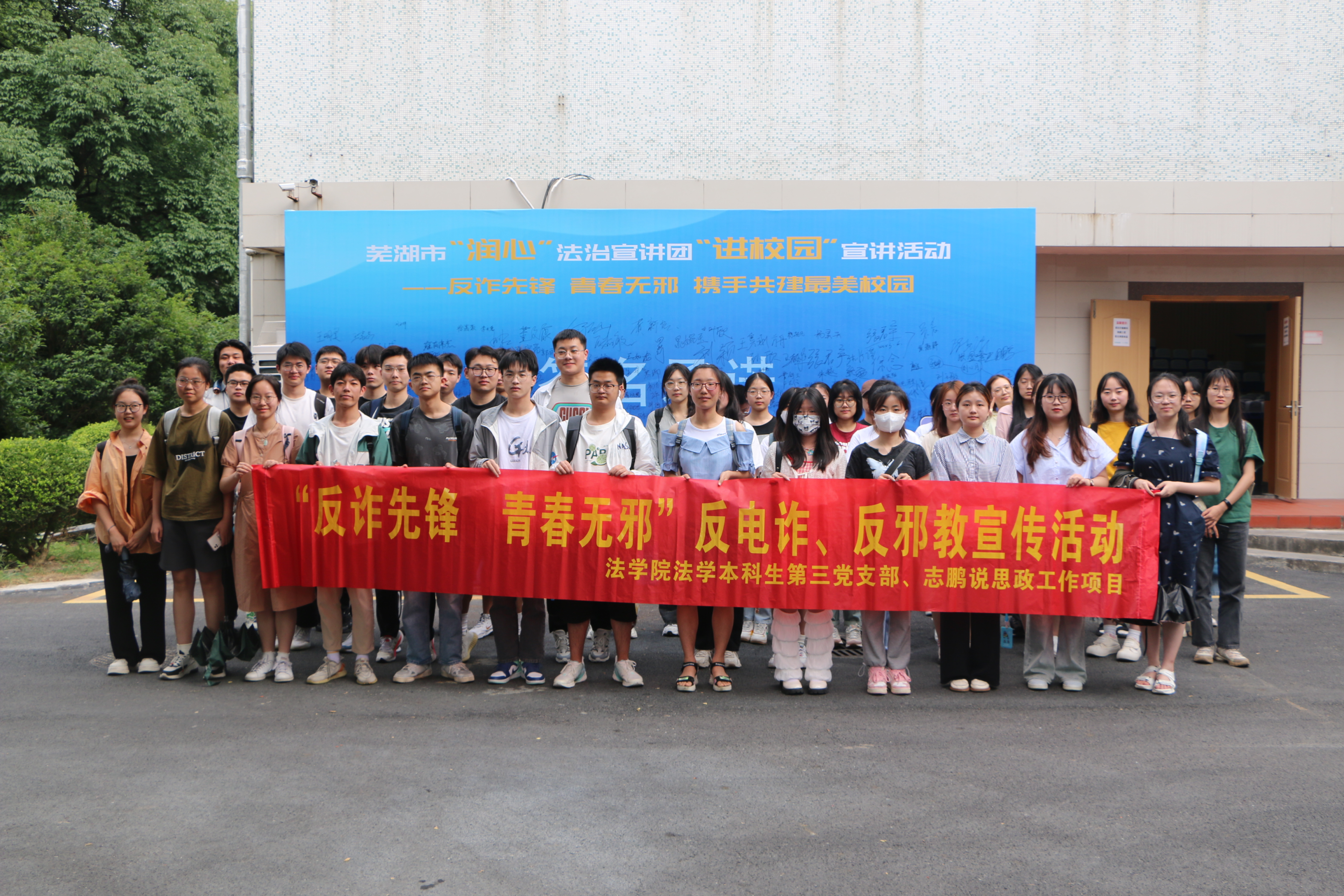 为深入学习贯彻党的二十大精神,增强支部成员的反诈骗、反邪教等安全防范意识,6月7日下午,36365线路检测中心法学本科生第三党支部成员参加了36365线路检测中心与芜湖市政法委合办的反电诈、反邪教宣传活动。