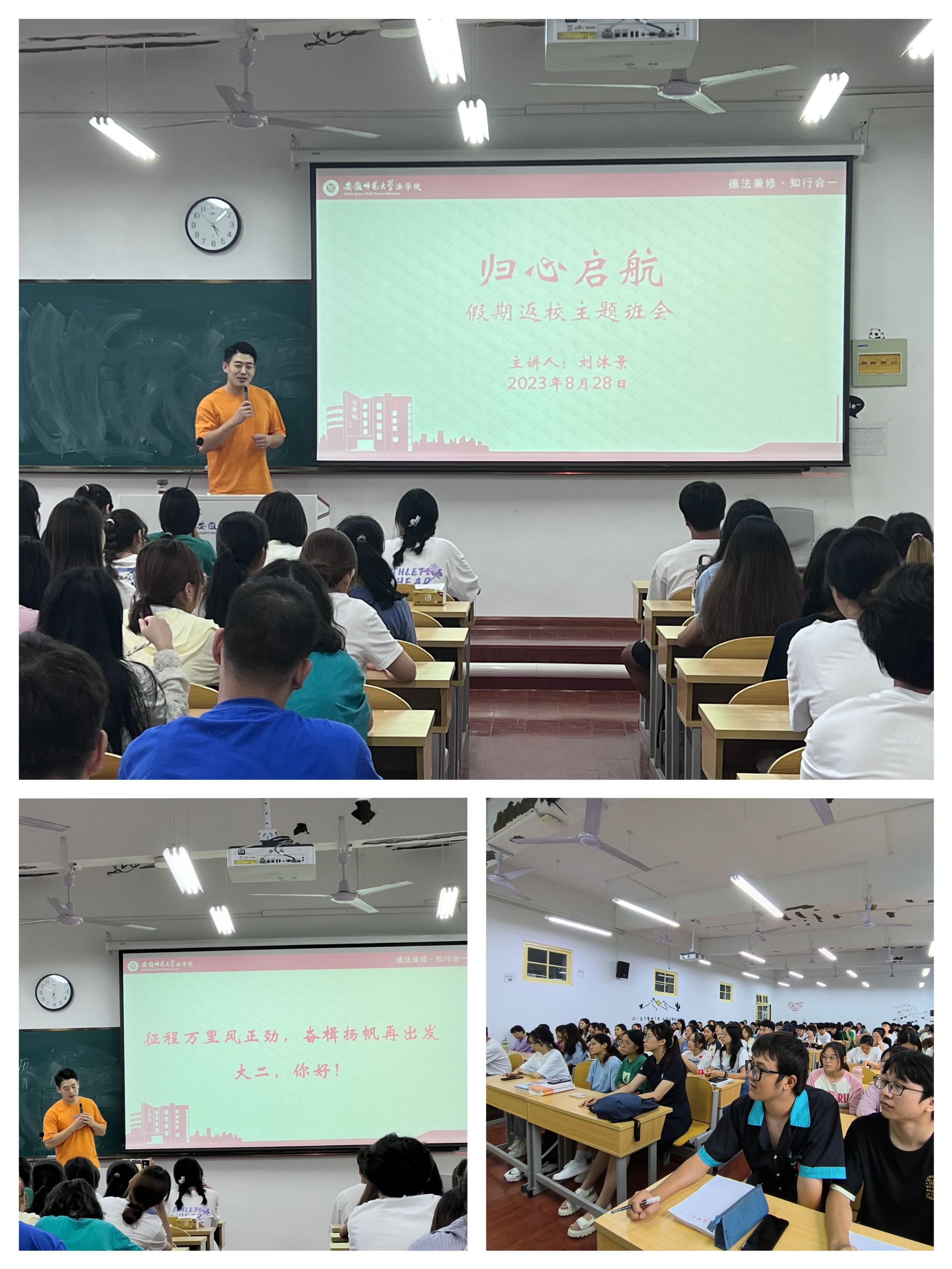暑云散,秋风起。新学期为帮助学生尽快投入到学习生活之中。8月28日下午,22级社会学类和行政管理专业召开“归心起航”新学期主题班会,班会由辅导员刘沐景主持,班级全体同学参加。