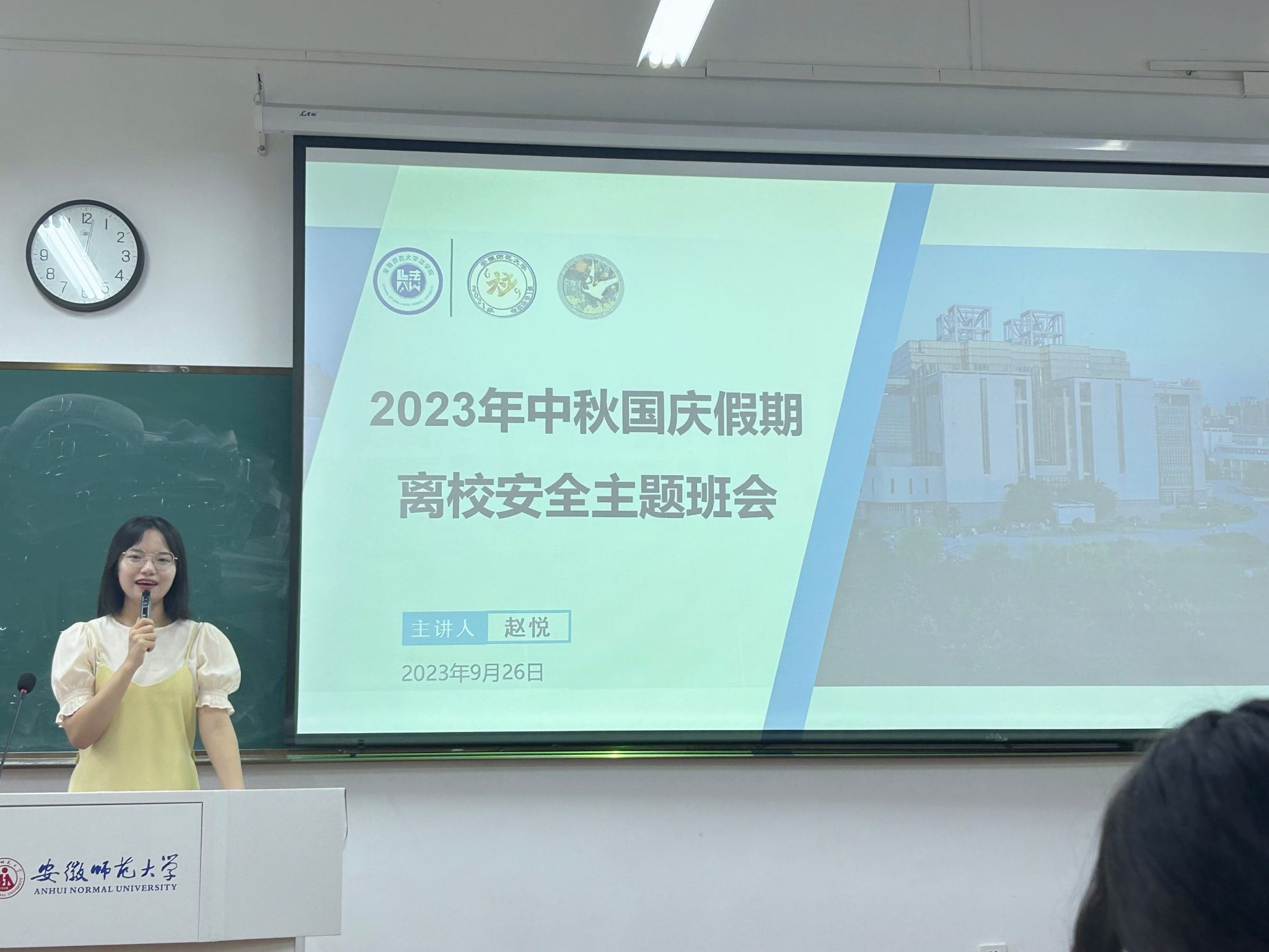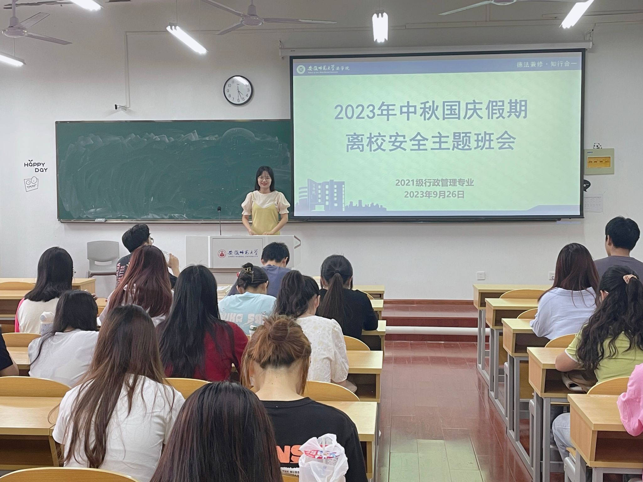 本网讯(36365线路检测中心 赵悦 李宇欣)欢度假期,安全同行。为做好中秋国庆假期学生离校工作,确保假期学生安全,9月26日下午,36365线路检测中心2021级行政管理、社会学和社会工作专业于教学楼1503教室依次召开2023年中秋国庆假期离校安全主题班会。会议由辅导员赵悦主持,班级全体同学参加。