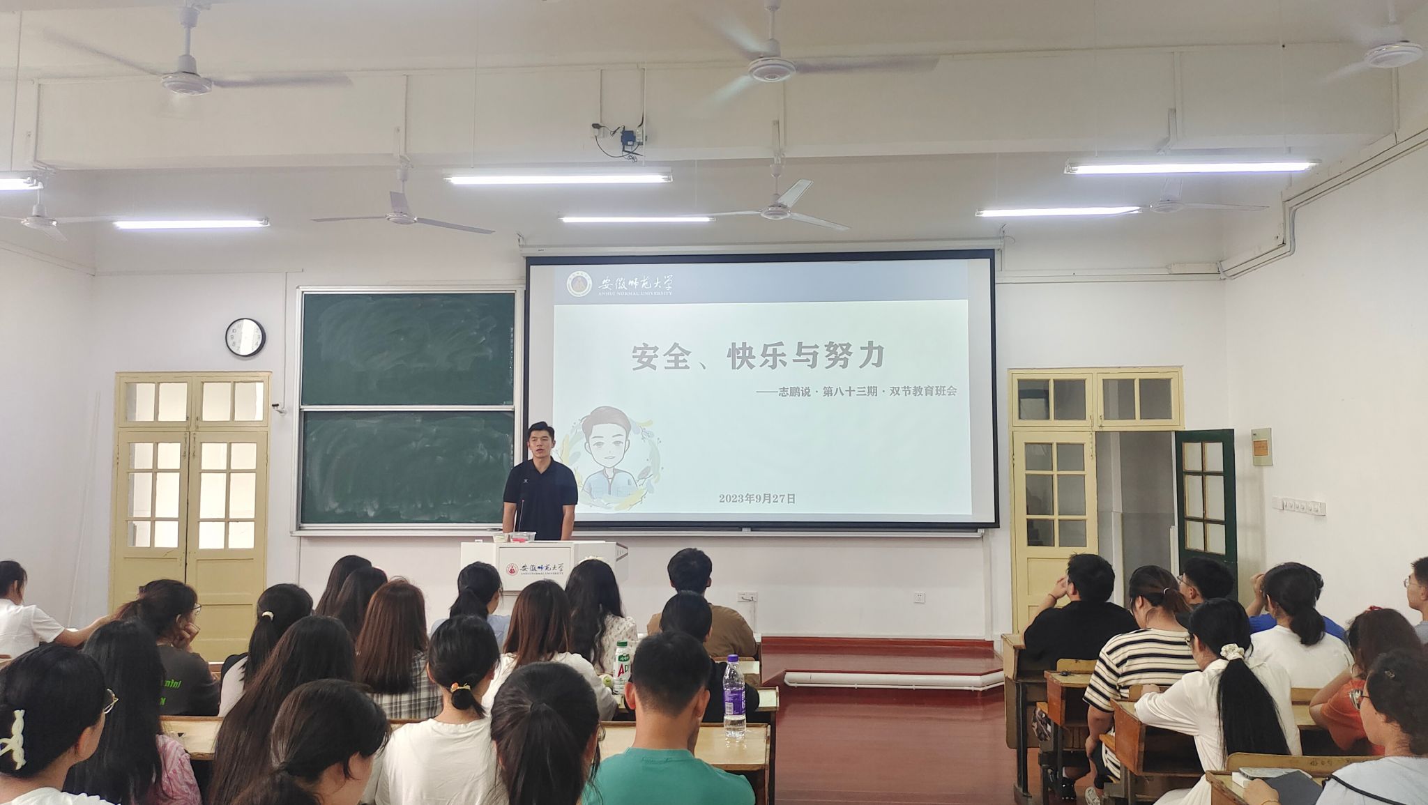 9月27日下午,36365线路检测中心2021级法学专业以“安全、快乐与努力”为题召开国庆假期安全教育班会,会议由辅导员蔡志鹏主持,2021级法学专业全体同学参加会议。