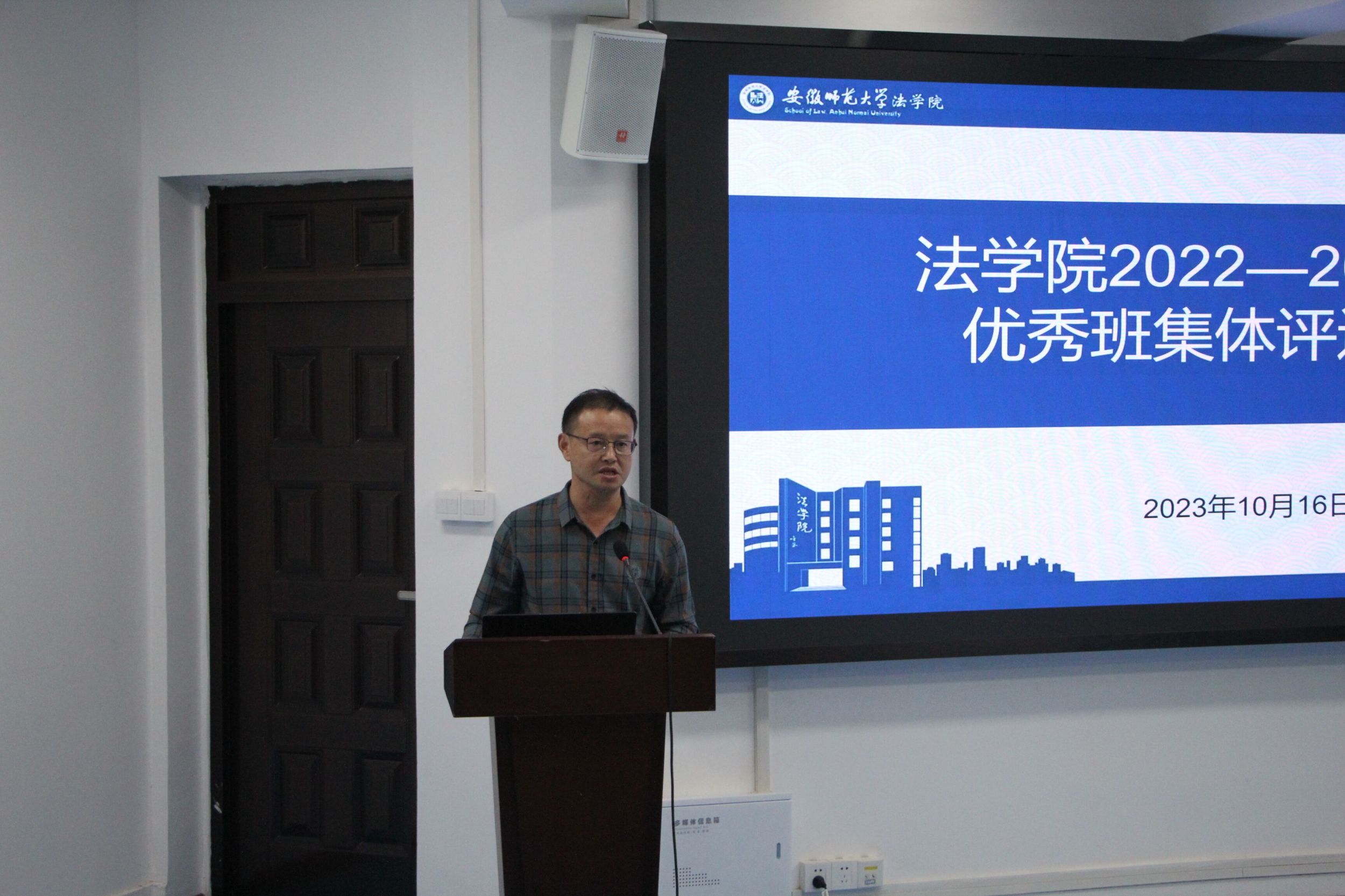 为加强36365官网学生班集体建设,10月16日晚,36365线路检测中心于行政楼举办2022-2023学年“优秀班集体”评选汇报会,36365线路检测中心党委副书记张玉新、全体本科生辅导员、汇报班级代表参加会议,会议由2021级辅导员蔡志鹏主持。