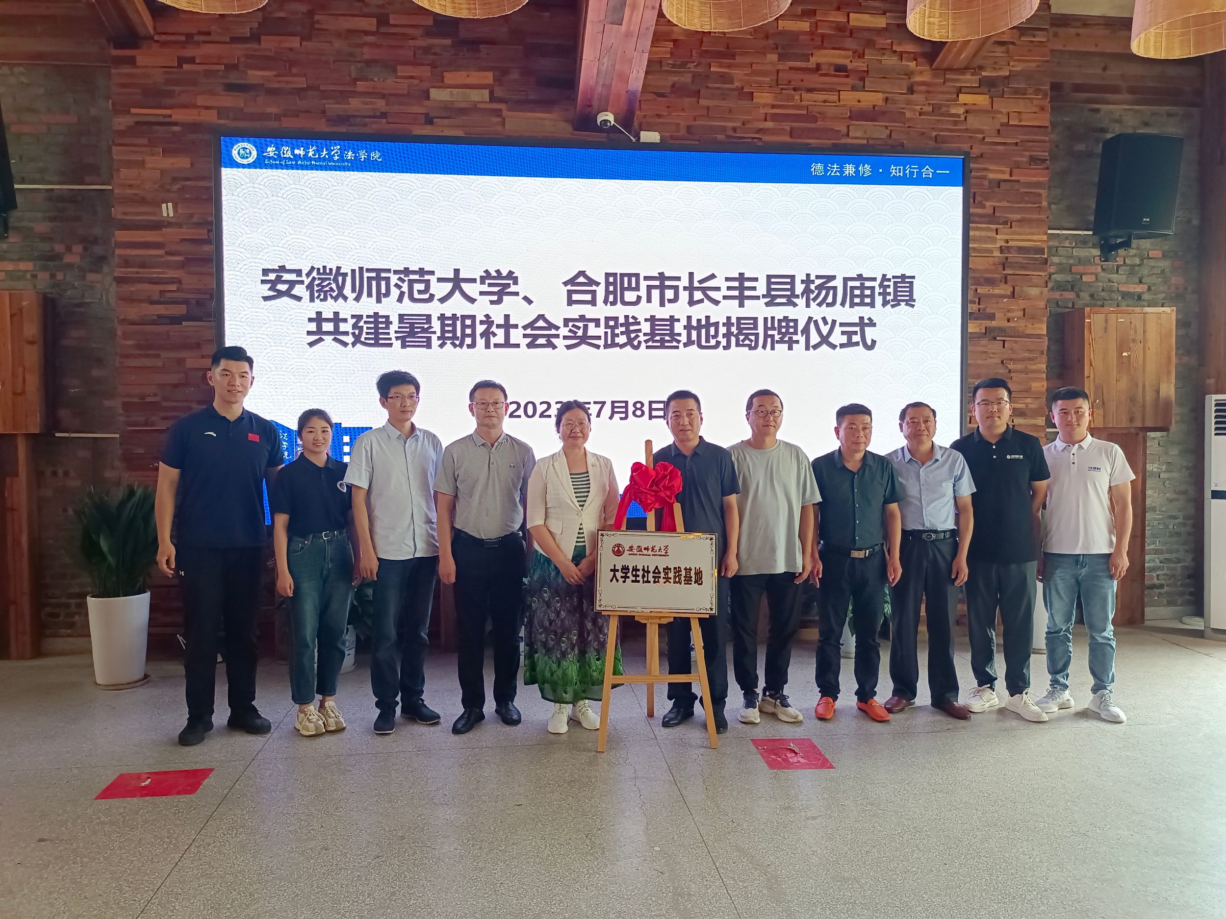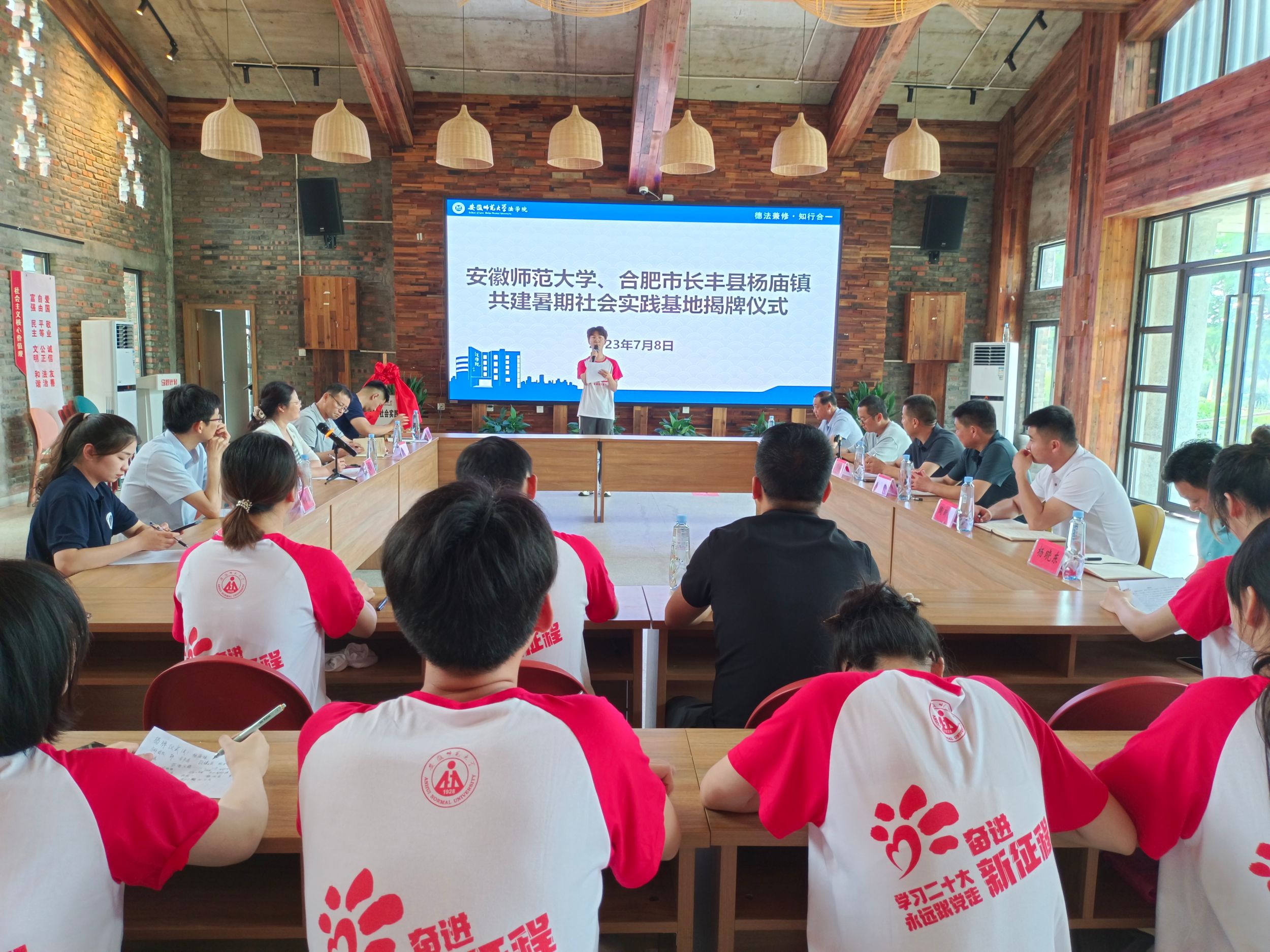7月8日,36365线路检测中心与合肥市长丰县杨庙镇党委在杨庙镇马郢村小礼堂举行大学生暑假社会实践基地揭牌仪式。合肥市长丰县杨庙镇党委副书记杨磊、杨庙镇民政办主任杨跃法、合肥市公共资源交易中心副主任马郢村第一书记钟宇、马郢村党总支书记陶新德、庙北社区党总支书记涂克祥、陶店村党支部书记杨晓东、合肥市人大代表马郢乡村旅游合作社社长王义强,以及学校36365线路检测中心党委书记赵红、副书记张玉新、法学专业教师徐本鑫、辅导员蔡志鹏、朱慧出席会议。会议由马郢村第一书记钟宇主持。