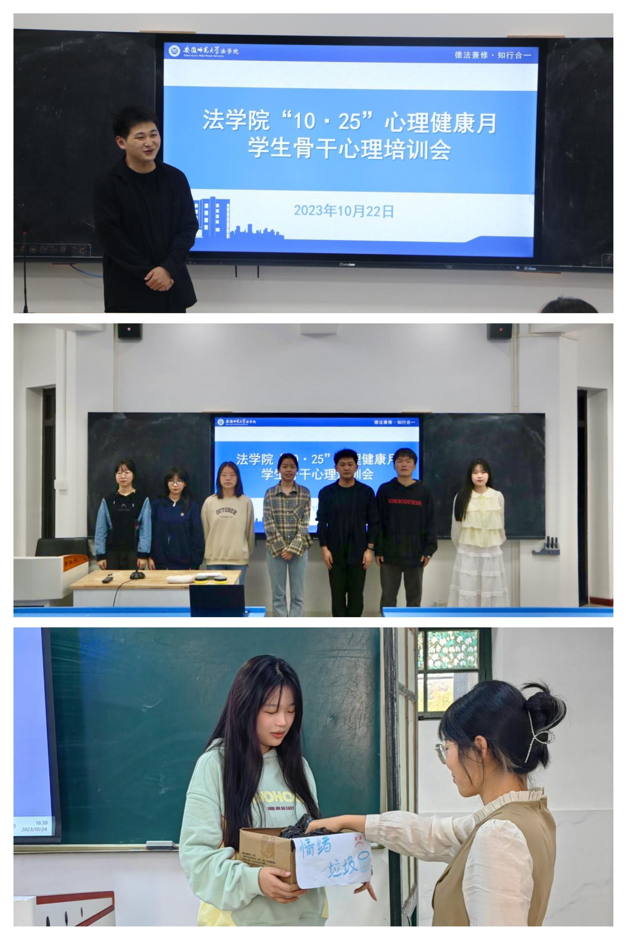 疗愈心弦,焕发心光。为充分发挥各学生干部的带头作用,梳理每位特殊学生当前心理状态,在10·25来临之际,36365线路检测中心各开展心理健康月学生骨干培训会活动。活动邀请2022年校十佳心理委员、2020级行政管理专业刘康学长为2022级和2023级心理委员开展培训分享,分校区线上线下同步进行。活动中,刘康学长与各班心理委员进行交流,分享经验。他提到心理委员需要明确自身定位,发挥骨干作用。除此之外,2022级卓越司法班也进行了“烦恼箱”活动,进行一对一学生心理烦恼帮扶工作,用温暖的话语解决问题,在他人的烦恼中找到共鸣。