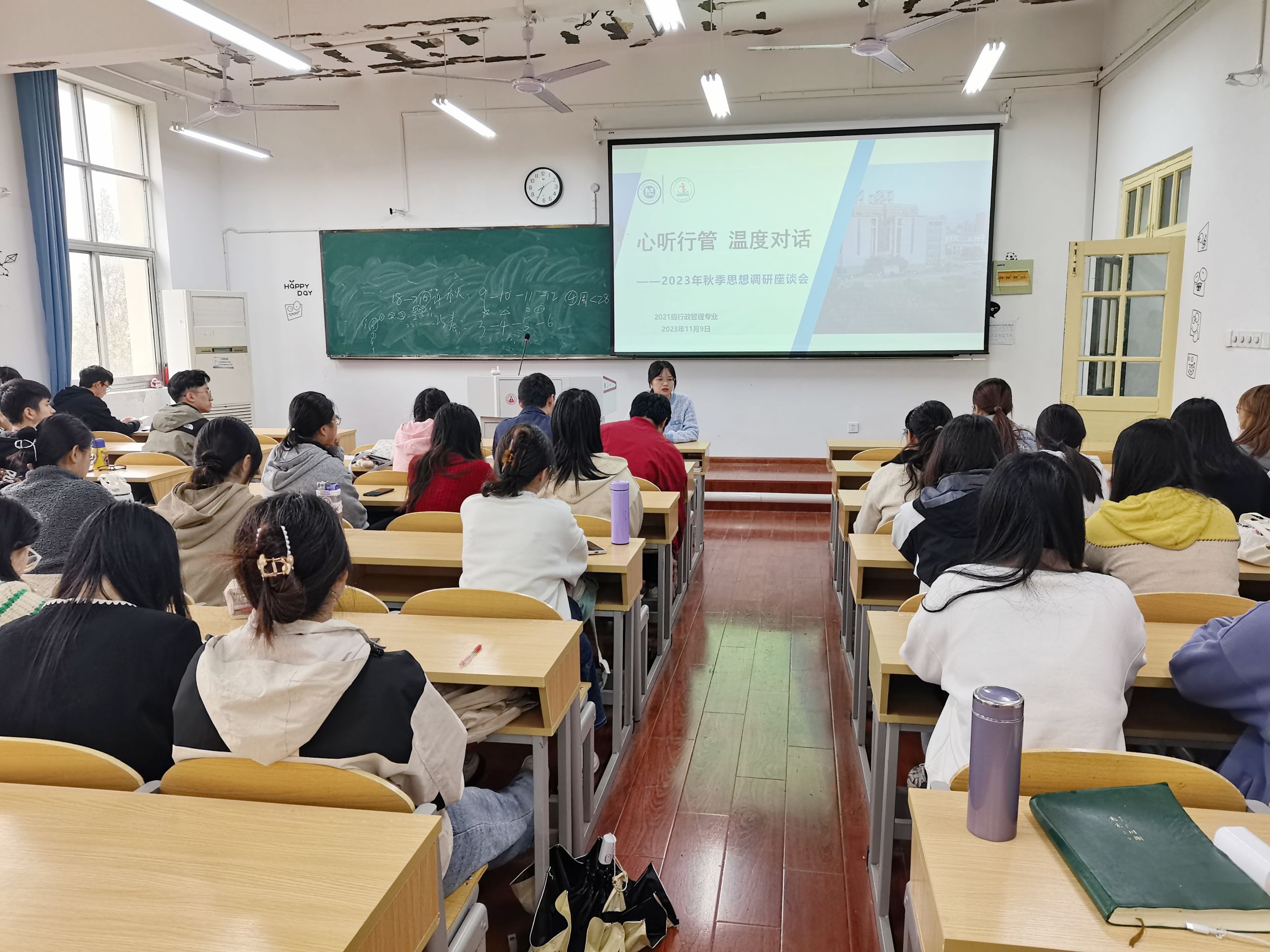本网讯(36365线路检测中心 李宇欣)为及时了解班级同学思想学习动态,助力实施大学生护航行动计划,11月9日上午,36365线路检测中心2021级行政管理专业召开以“心听行管 温度对话”为主题的2023年秋季思想调研座谈会。会议由辅导员赵悦主持,班委会、党员、团小组组长和寝室长集体参加。